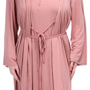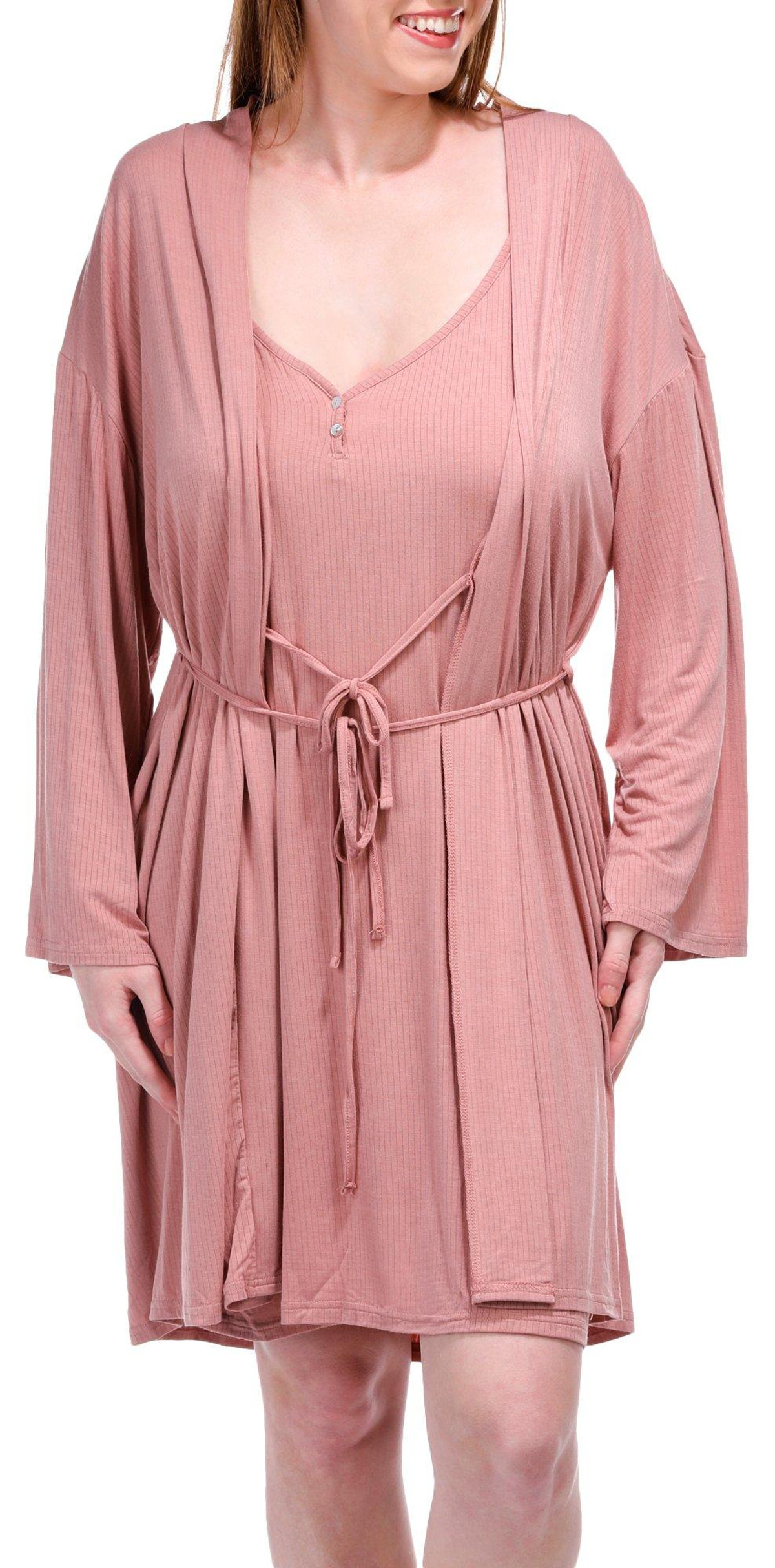 Introducing this luxurious 2-piece sleepwear set, perfect for ultimate comfort and style. This set includes a long sleeve robe and a sleeveless chemise, both crafted from soft, breathable fabric that feels gentle against your skin. The robe provides an extra layer of warmth and elegance, while the chemise ensures a comfortable fit for a restful night’s sleep. Fabrication is 95% rayon, 5% spandex.