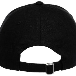 This Womens Baseball Hat features classic 6-panel ball-cap styling in a solid color cotton fabrication, a front embroidered and embellished design, a pre-curved visor, and an adjustable strap and buckle in the rear.