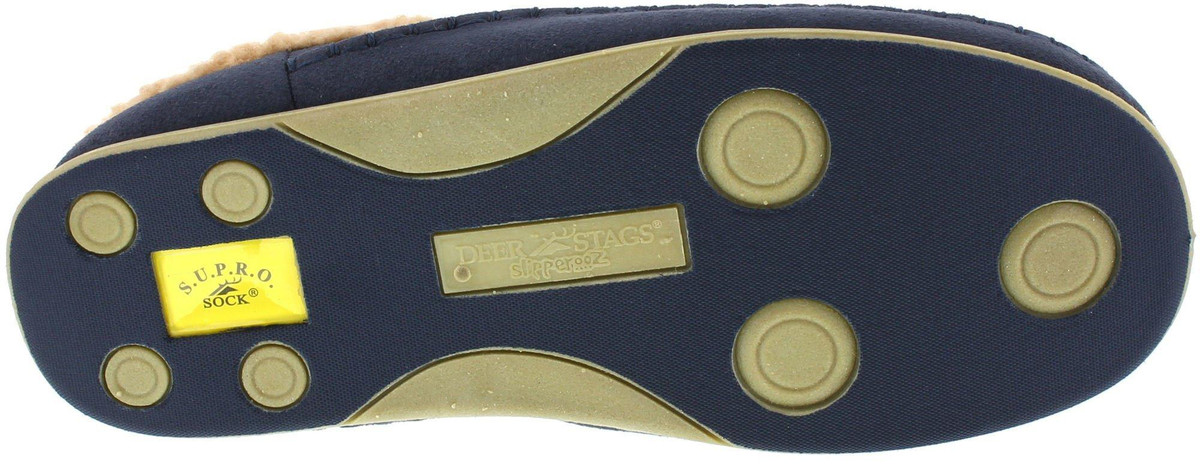 These easy-to-wear slippers feature a fabric upper with faux fur lining for warmth. Slipperooz Nordic slippers are fantastic indoor-outdoor slippers to wear around the house or running errands. Includes Deer Stags S.U.P.R.O. Technology which provides excellent shock absorption.
