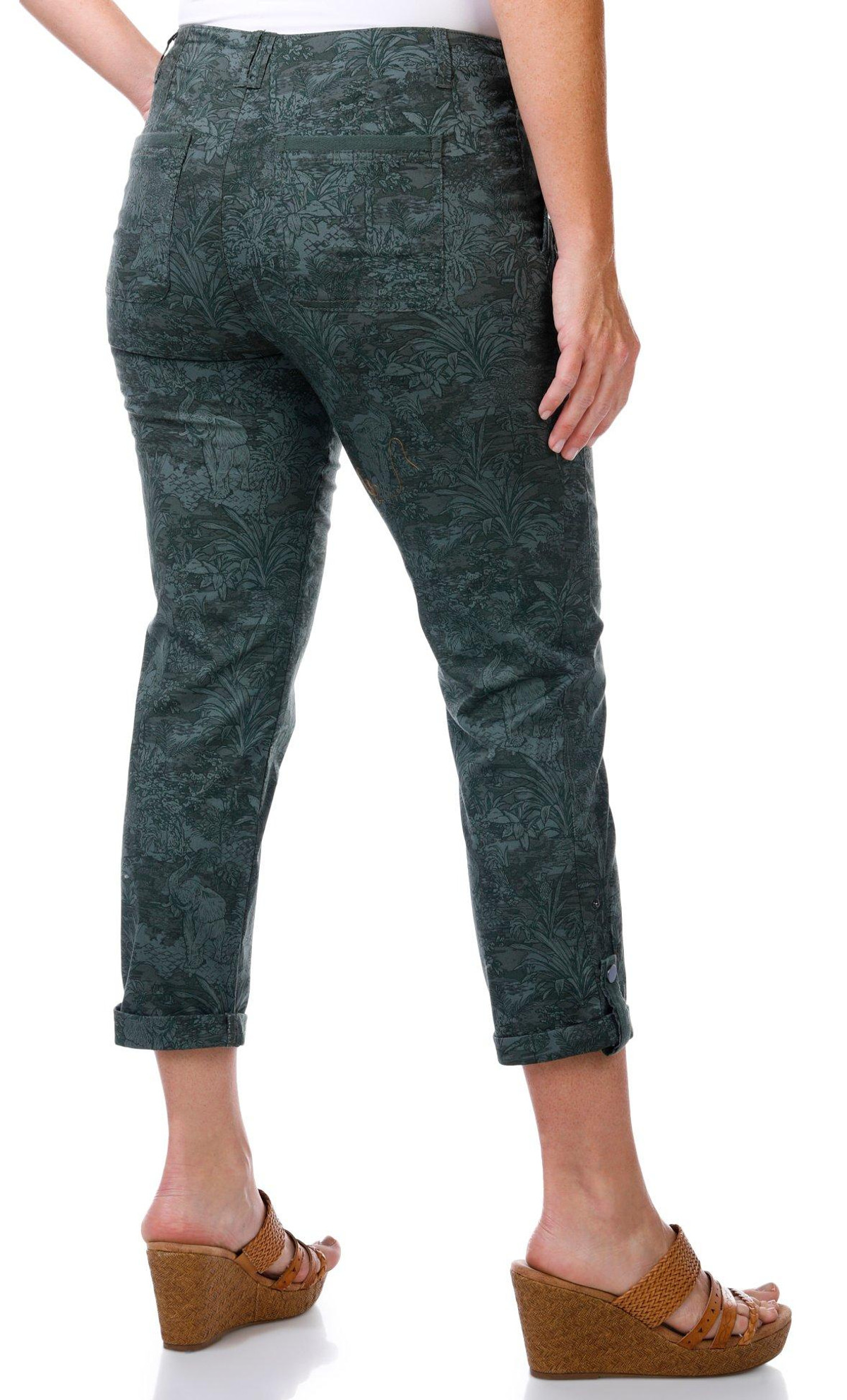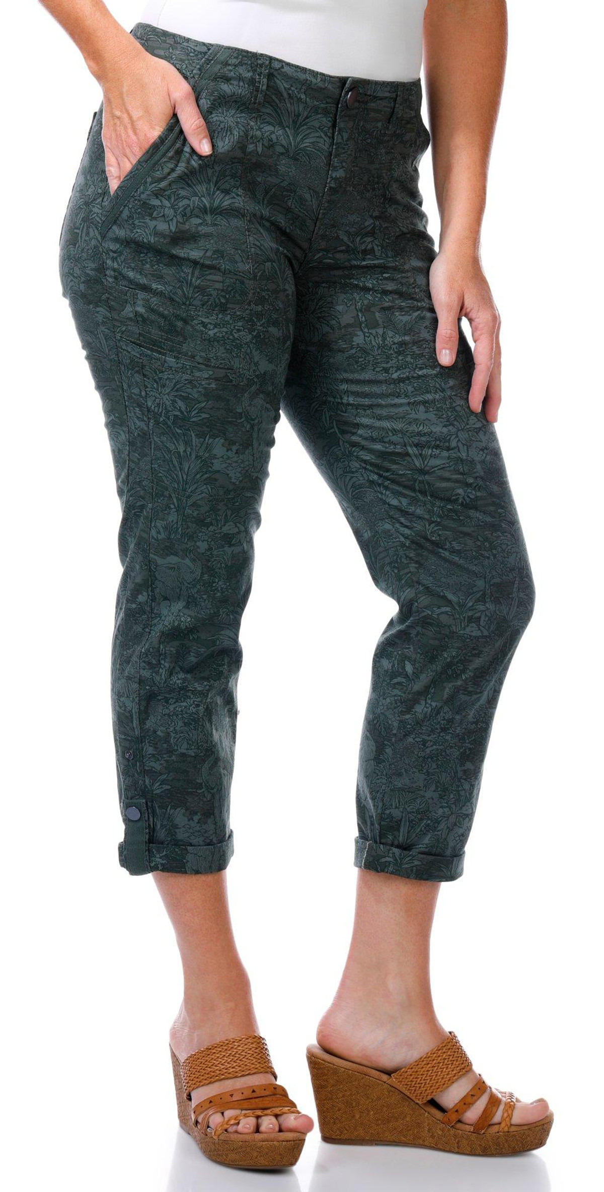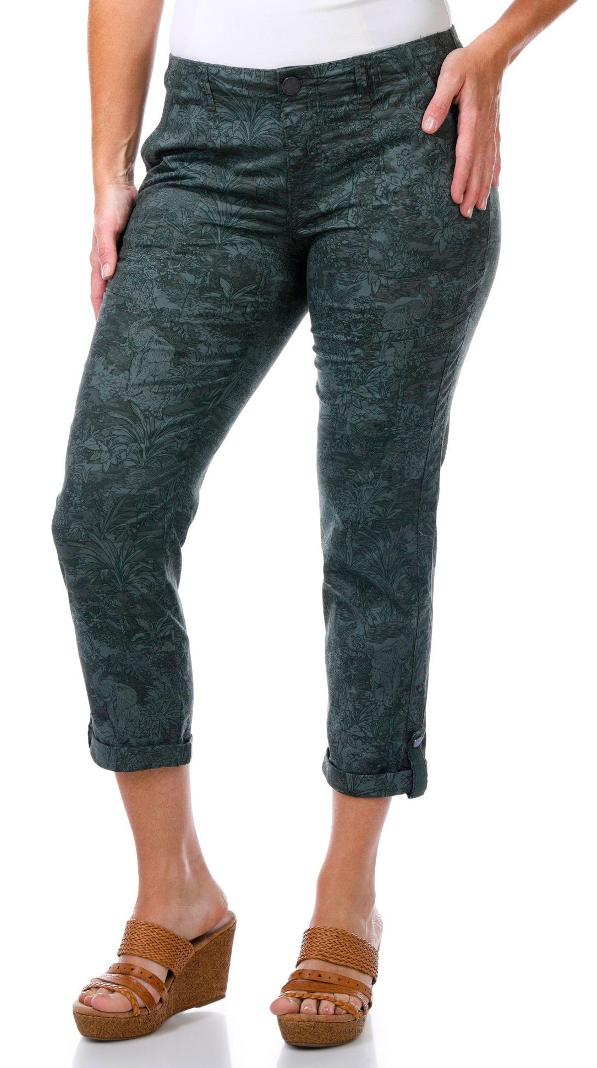 Democracy Womens 25 in Roll Tab Hem Print Capris