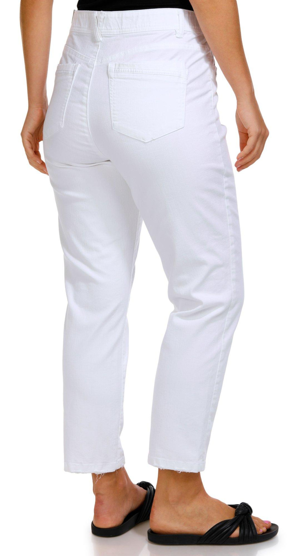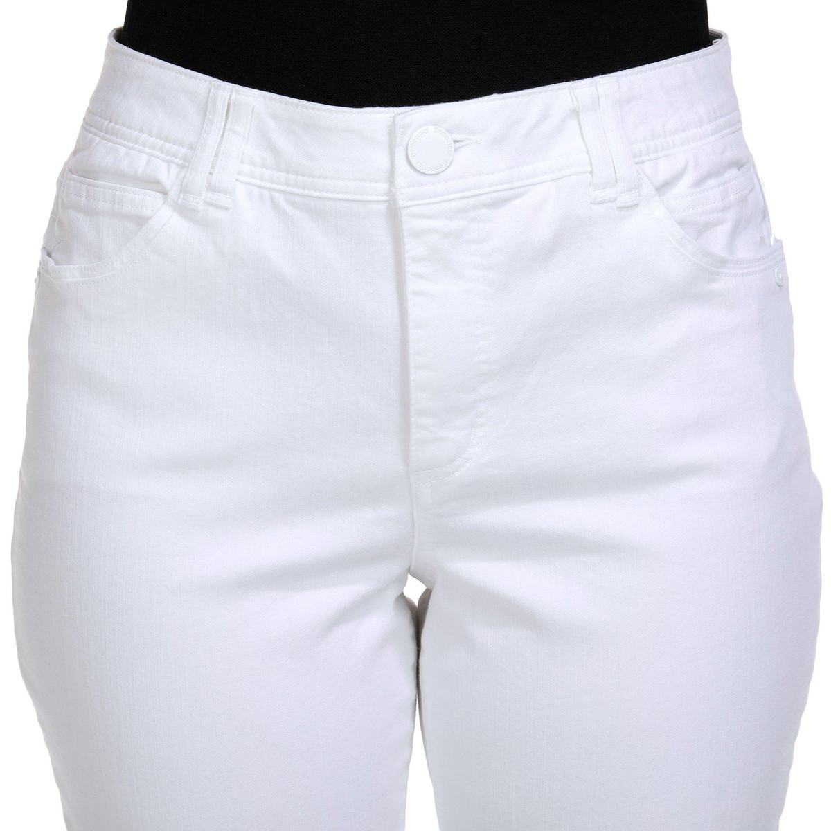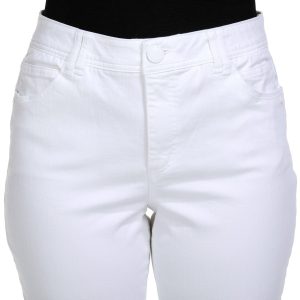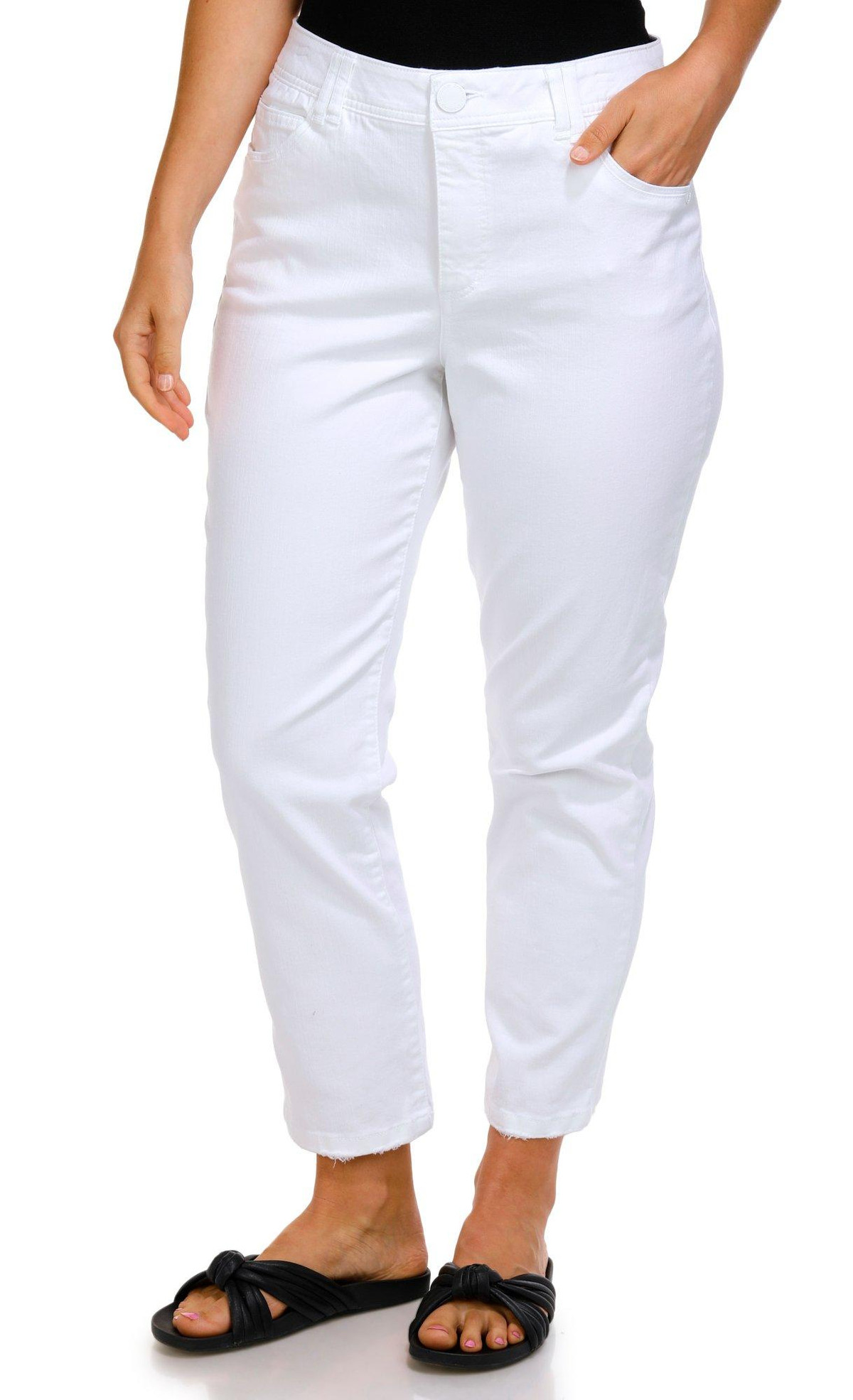Flatter your figure with these Womens 27 inch Ab-Tech Slim Straight Jeans. Made from a soft, stretchy blend of cotton, polyester, rayon, and spandex, they feature a solid color, button-fly zip closure, high-rise waist, slim straight fit, and built-in slimming panels for a sleek, confident look.