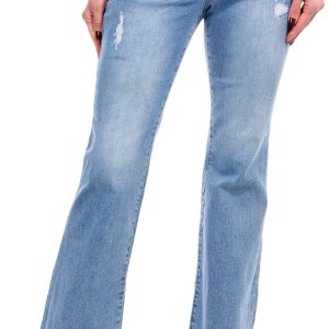 These weekend-ready high-rise Itty Bitty Boot jeans offer a well-worn look with a chic light blue vintage wash, fading, and subtle distressed details. Designed with soft stretchy denim and figure-flattering Ab solution® fit technology that flattens your tummy with interior slimming power mesh panels. Fabrication 85% cotton, 14% polyester, 1% spandex