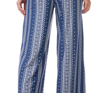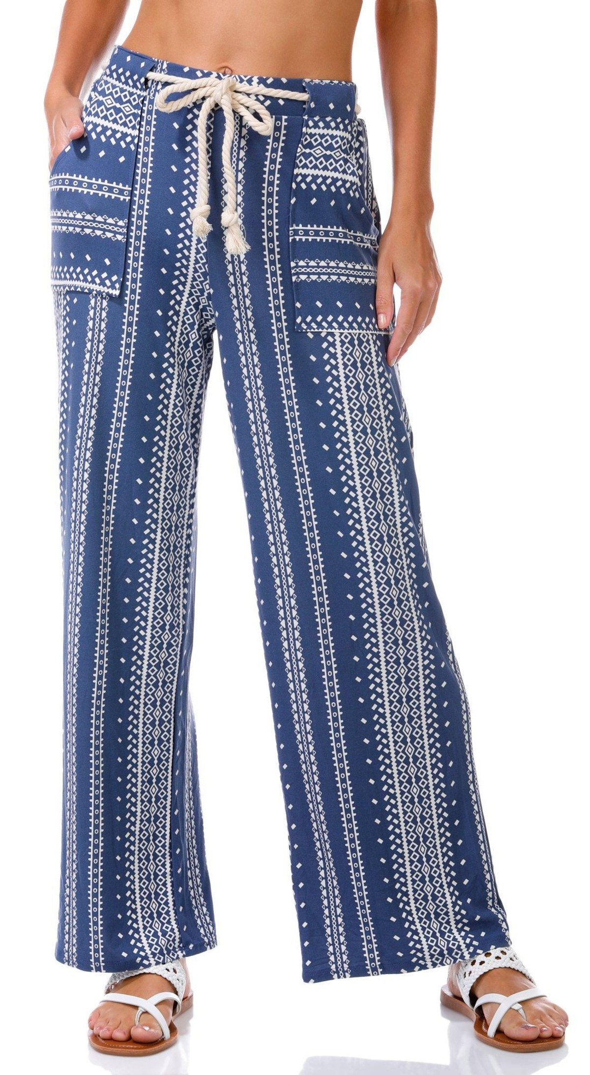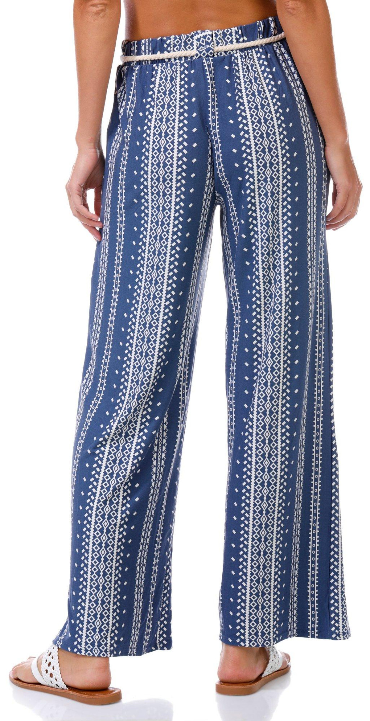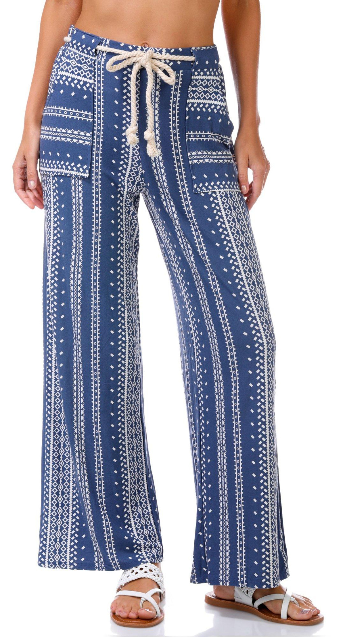 These juniors wide leg pants feature a bold geometric print and a relaxed fit for all day comfort. The pull on waistband and rope belt offer easy wear and a touch of style while side seam pockets add function. Fabrication 92% polyester, 8% spandex
