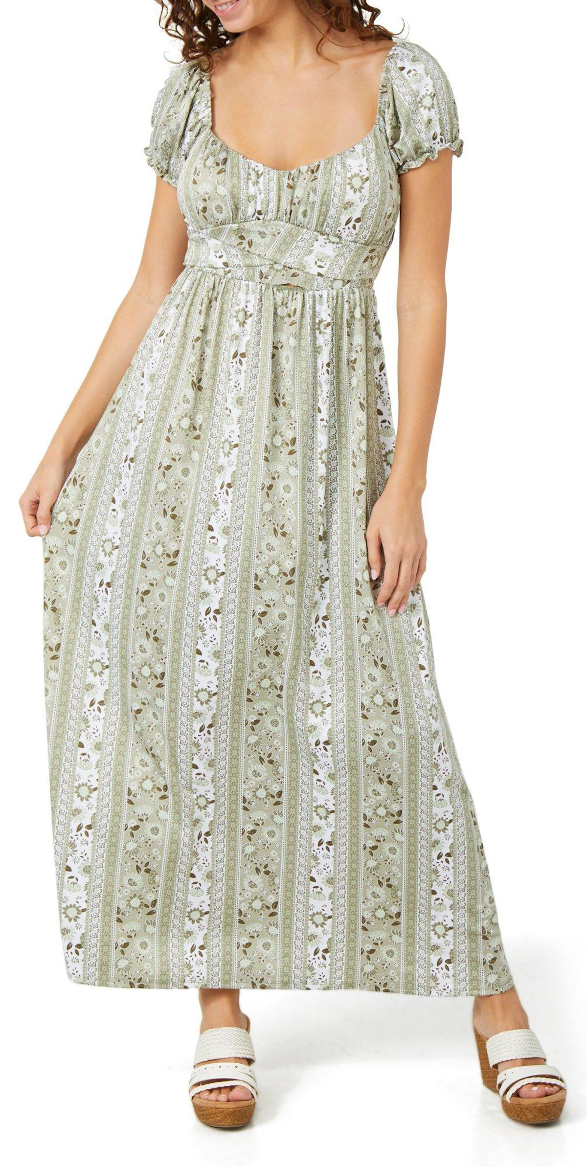 Step into effortless elegance with the Juniors Short Sleeve Floral Maxi Dress. Featuring a soft floral print, internal shelf bra for light support, waist tie for a flattering fit, and ultra-soft fabric for all-day comfort, it is your go-to for breezy, beautiful style. Fabrication 95% polyester, 5% spandex