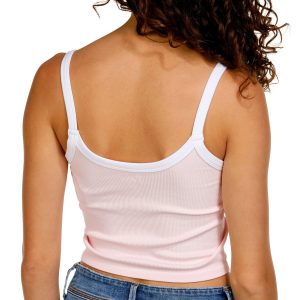 This sleeveless cami top features a flowing hanky design and delicate lace details for a soft, feminine touch. Lightweight and airy, it’s perfect for warm days or layered looks.
