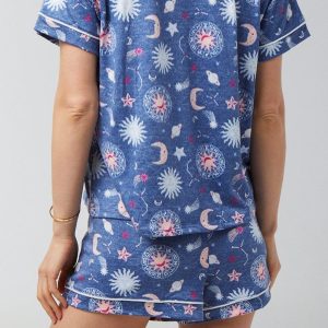 Introducing our Women’s 2 Pc Notch Collar Pajama Shorts Set, crafted from a soft and stretchy blend of polyester and spandex. Enjoy a touch of paradise with this charming pajama set.