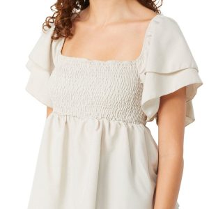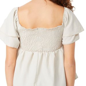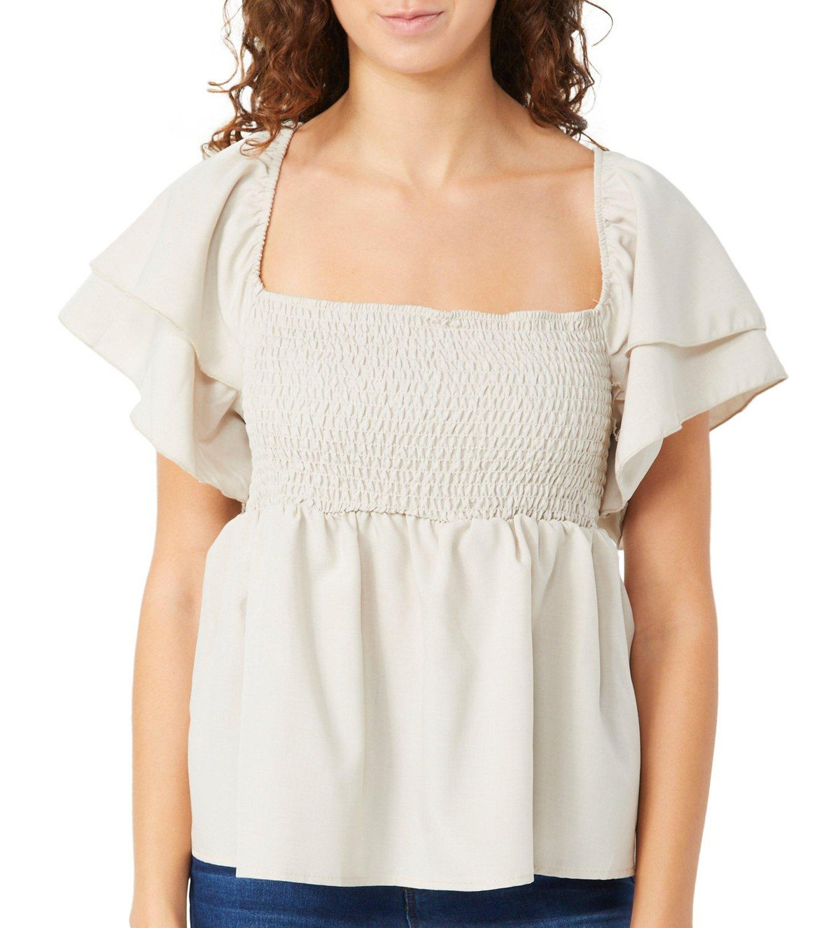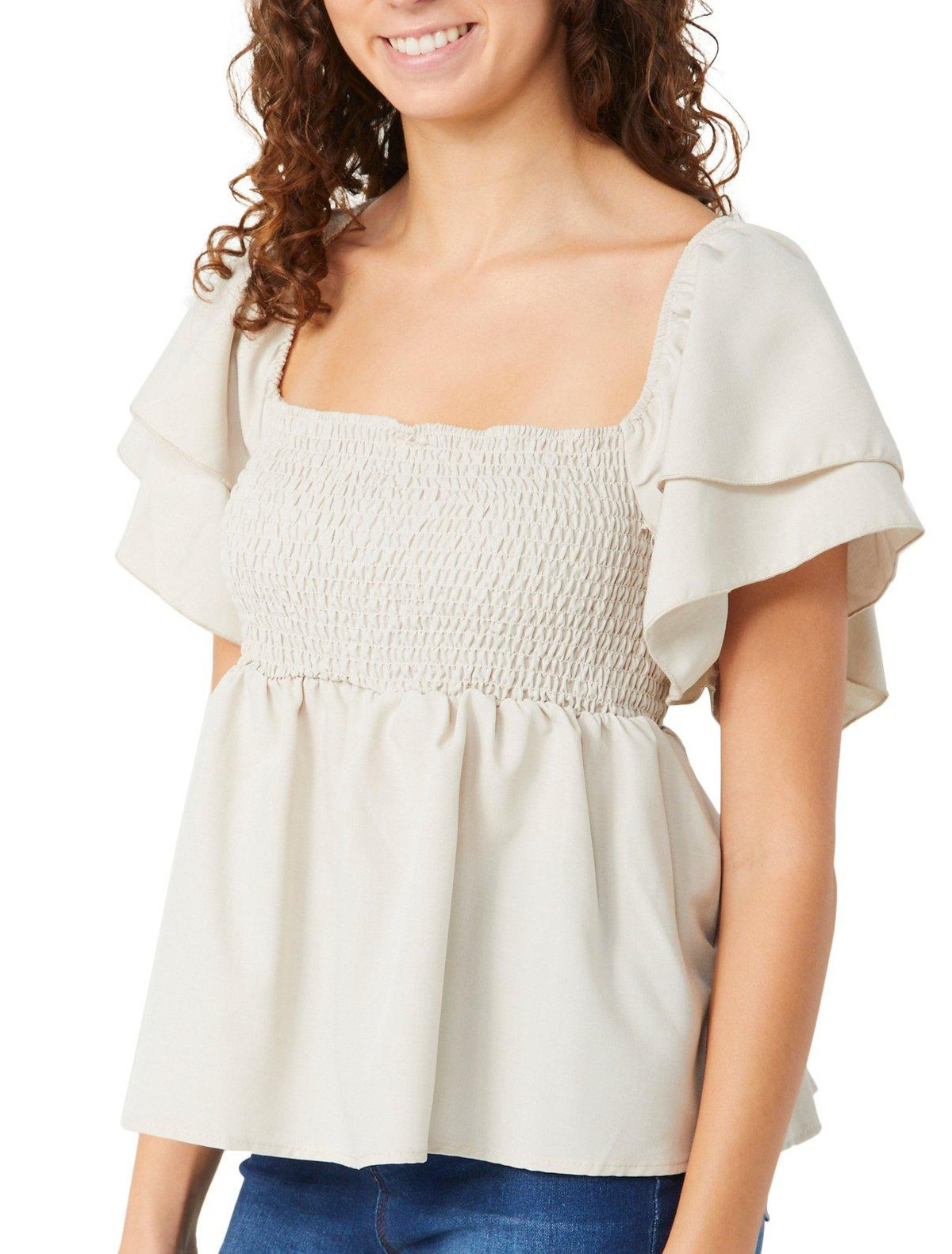 The Juniors Smocked Top is a chic and versatile addition to any wardrobe. Made from pure polyester, this top offers a comfortable fit. Featuring a stylish solid color, oversized ruffle sleeves, and a smocked chest, it adds a touch of elegance to any outfit. The flattering silhouette make it perfect for pairing with jeans or skirts, ideal for both casual and dressy occasions.