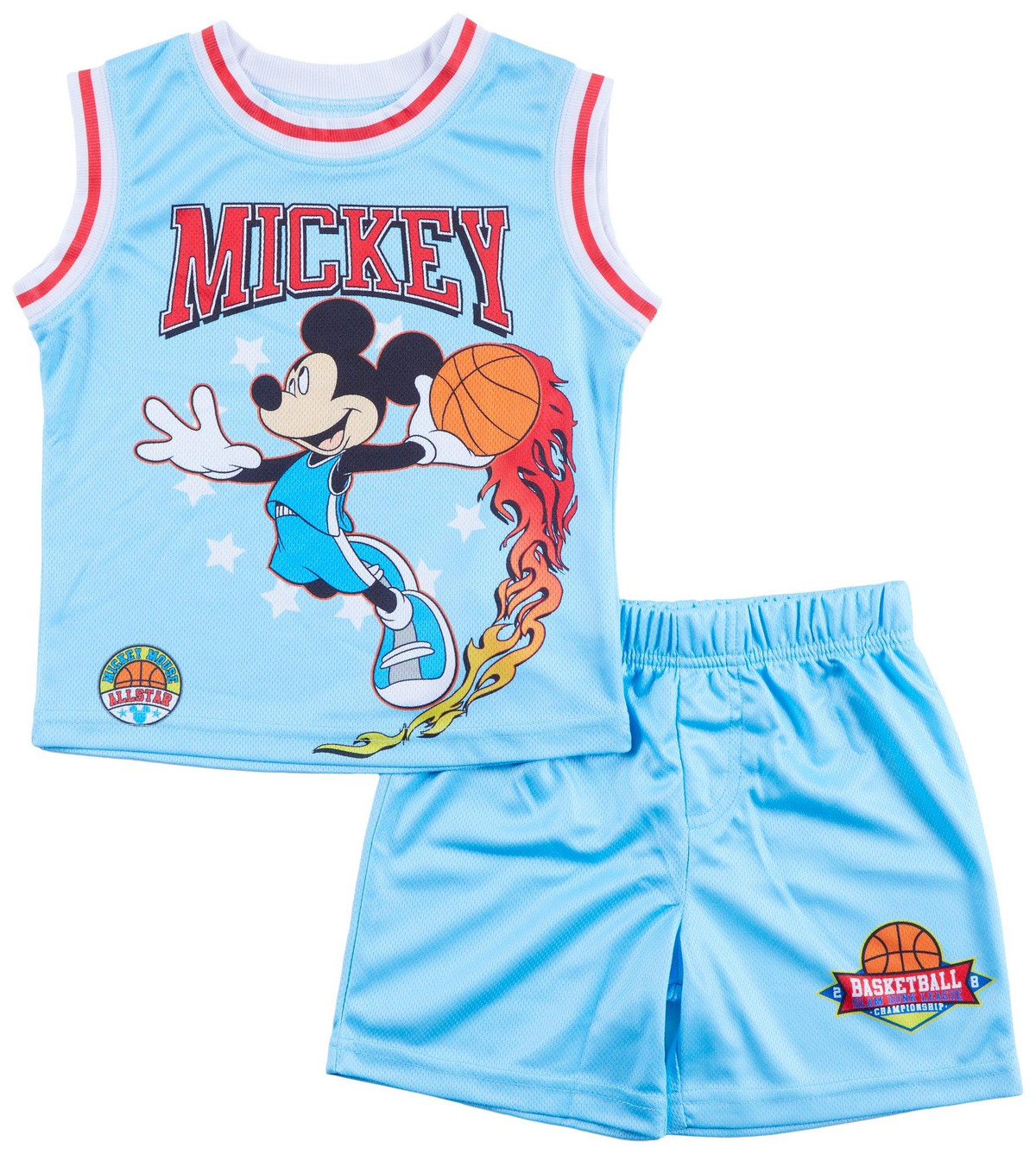 Give his style a slam dunk with this Disney Mickey Mouse Basketball Set! Featuring a sporty jersey with bold graphic appliqué and ribbed trim, plus matching shorts with an easy pull-on waistbandit’s a winning combo for playtime and beyond. 100 % Polyester