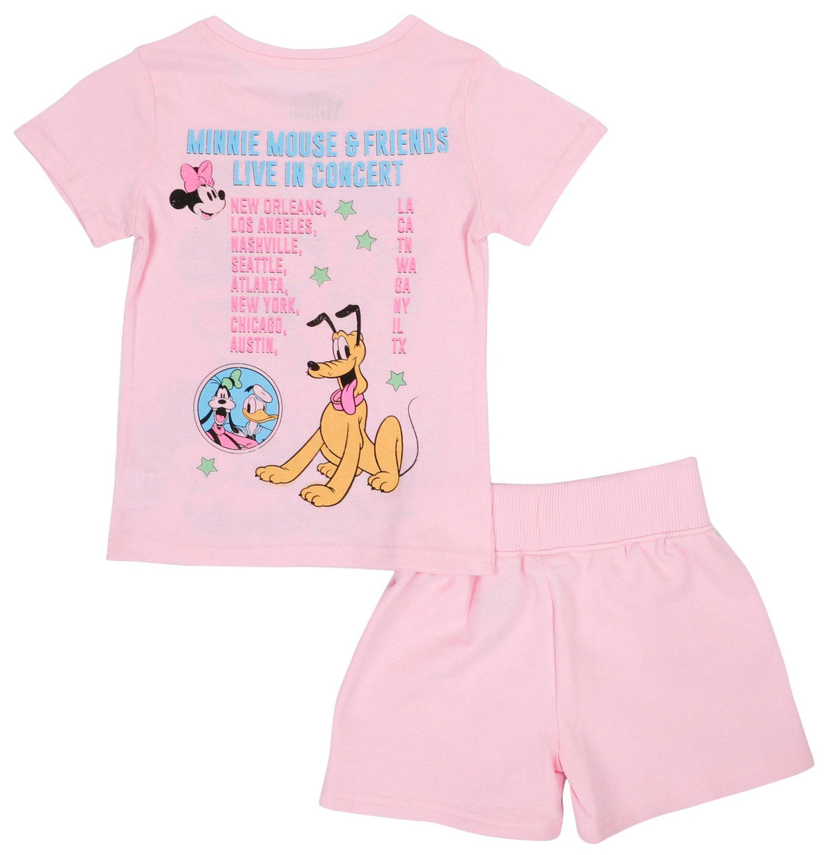 This 2 piece set features a short sleeve with Minnie Mouse screen print, crew neckline, Rhinestones, and a matching elastic waist Minnie Mouse pocket free twill short.