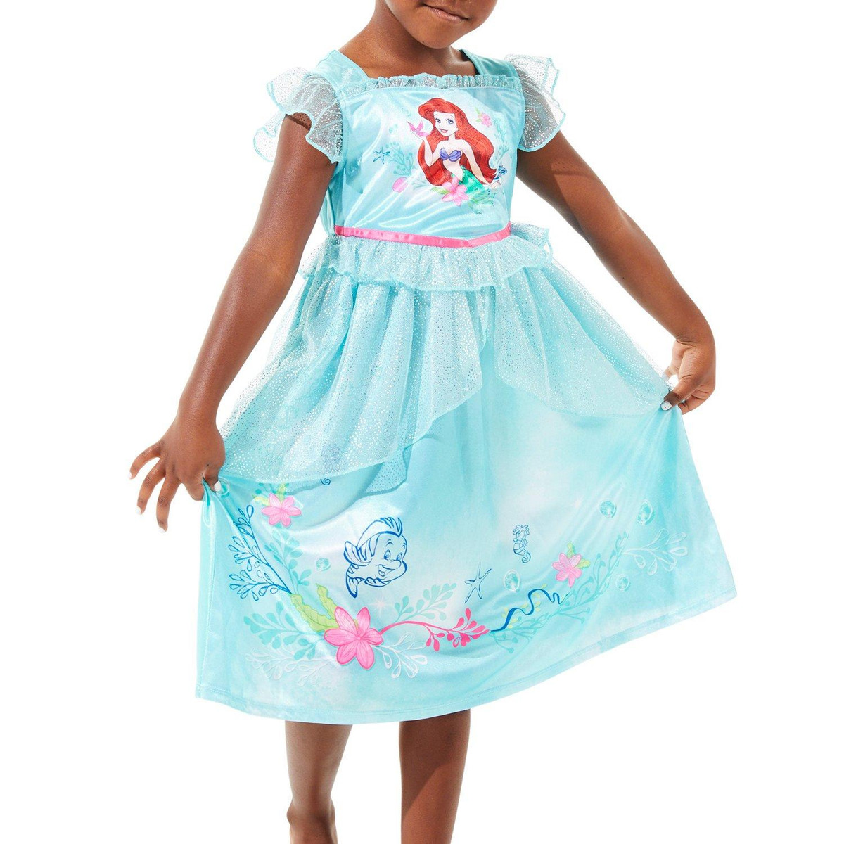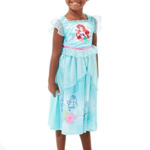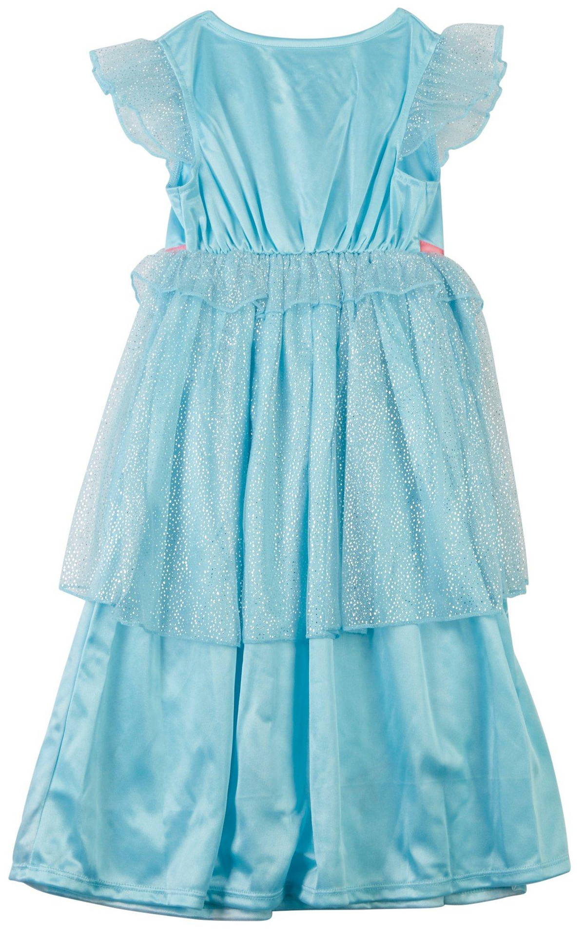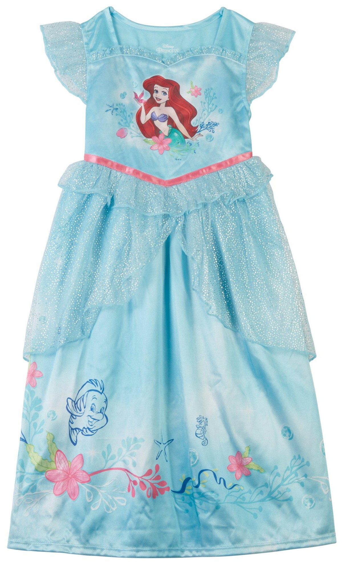 She will look fabulous in this little mermaid nightgown! This dress features flutter sleeves on lightweight satin and tulle fabric, an attached tutu tulle skirt styling, screen print, and a V-neckline.