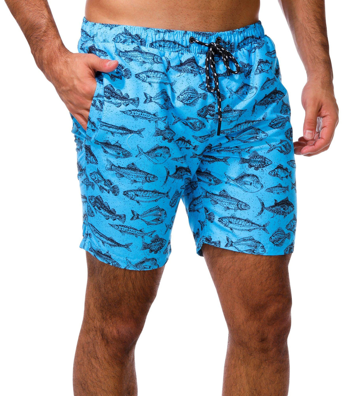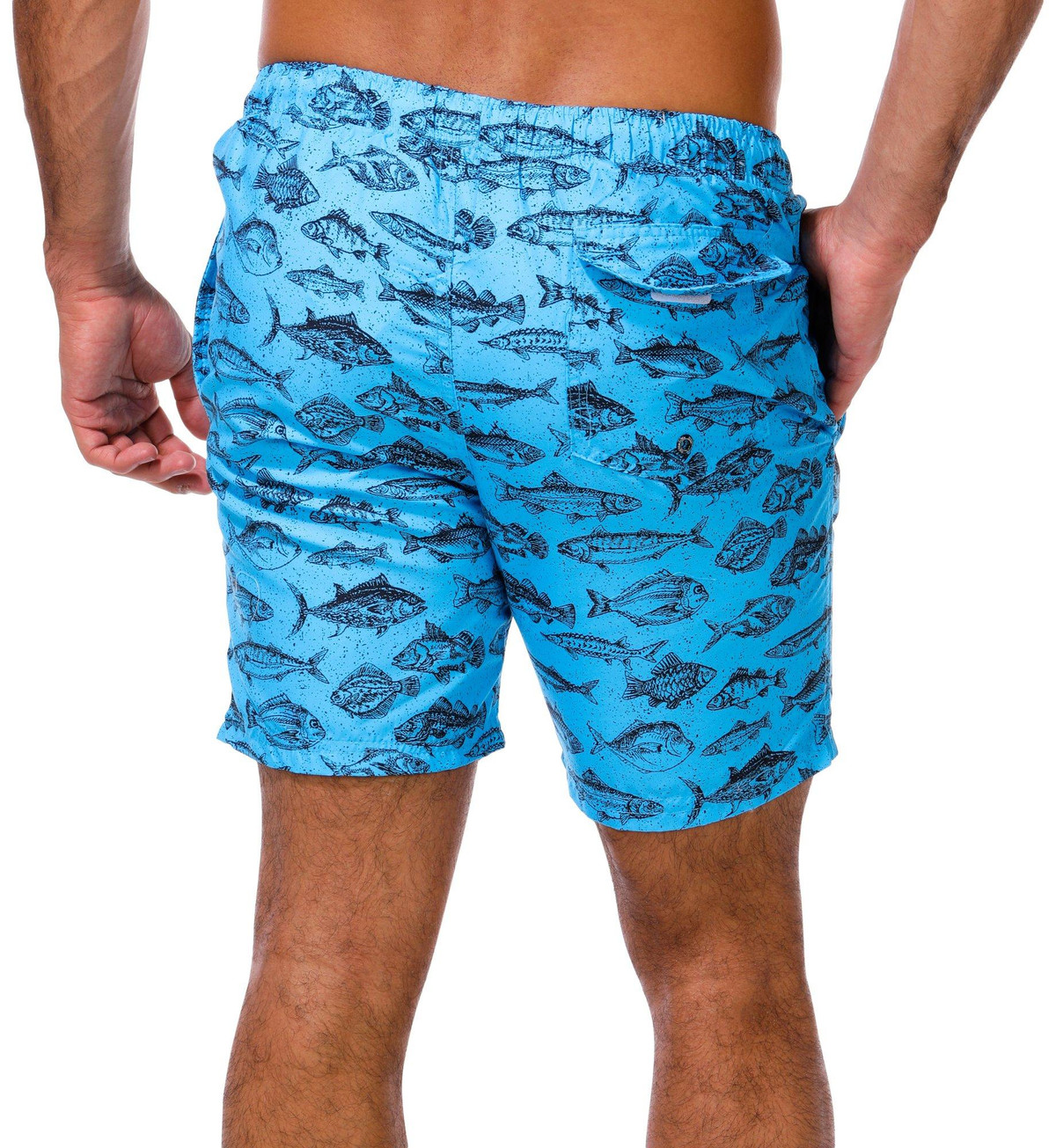 Dive into summer with the Men’s Ocean Fish Print Swim Shorts. Featuring a vibrant fish print, drawstring waistband, side seam pockets, and a back pocket, these shorts combine fun style with everyday functionality.