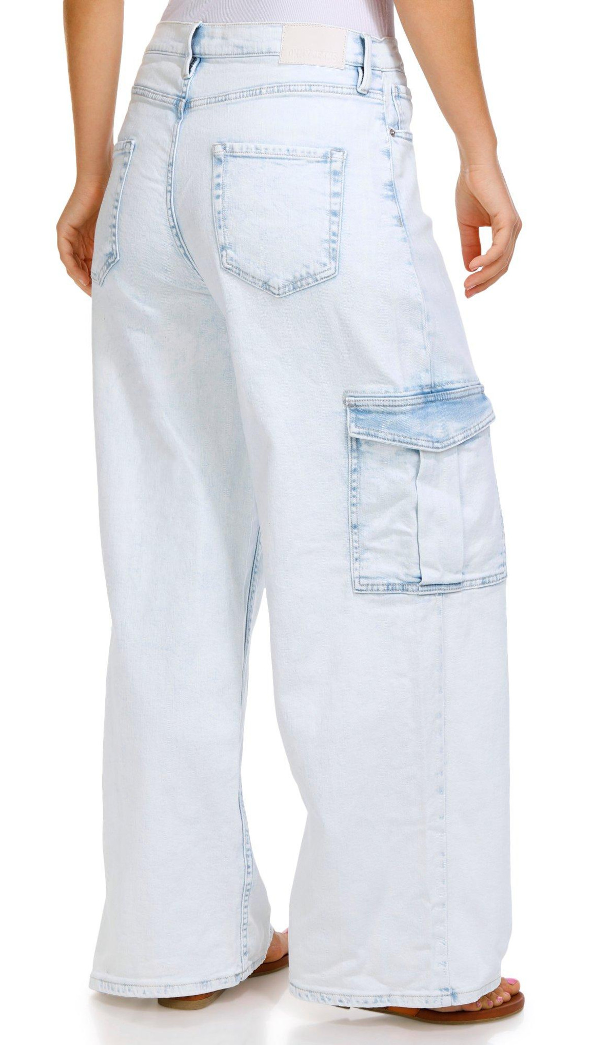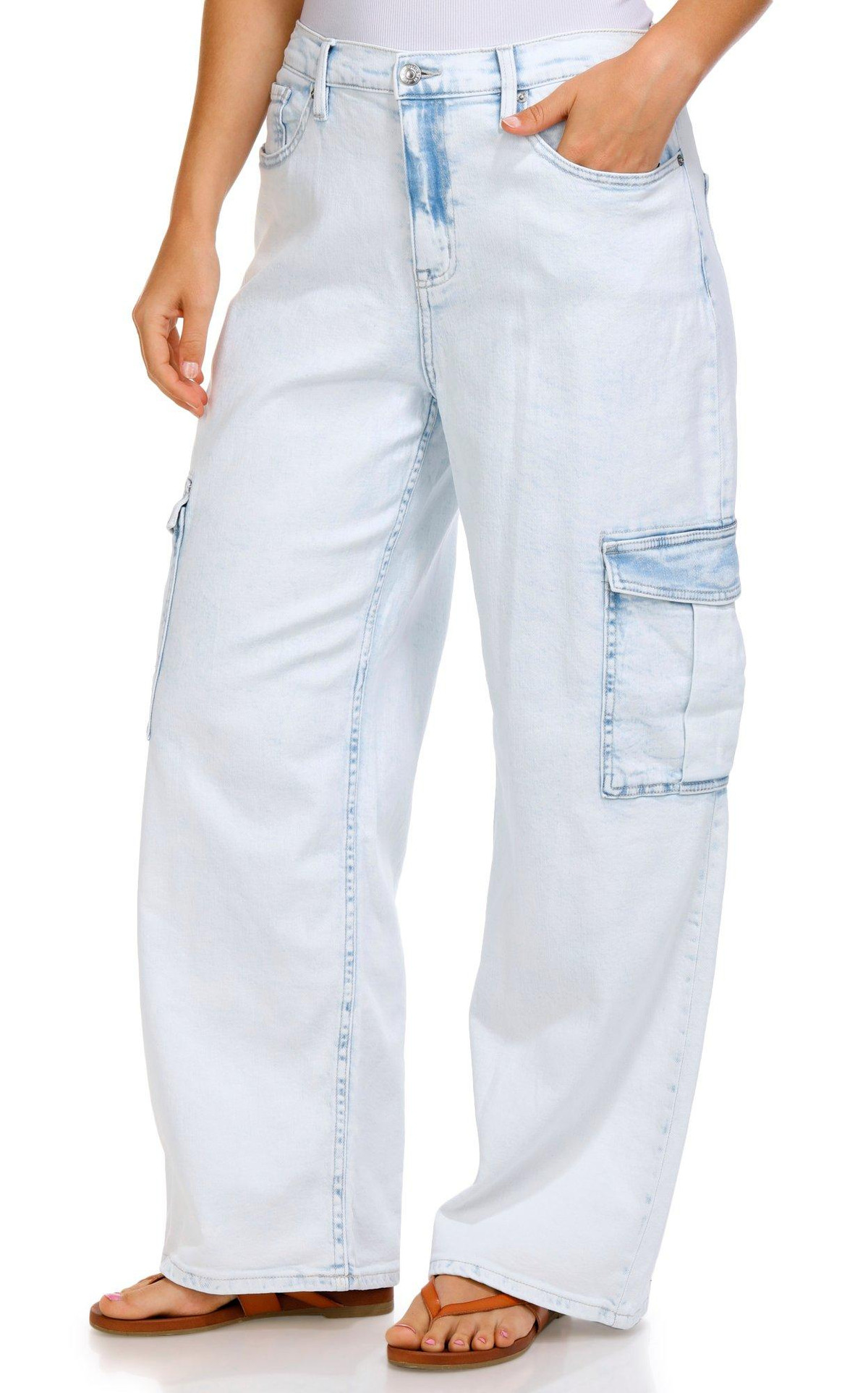 Step up your denim game with the Women’s High Rise Wide Leg Cargo Jeans. Made from a comfy cotton-spandex blend, these jeans feature a flattering high-rise waist, roomy wide-leg fit, classic 5-pocket styling, and extra cargo pockets for utility-chic flair. Finished with a button-fly zip closure for a timeless touch.