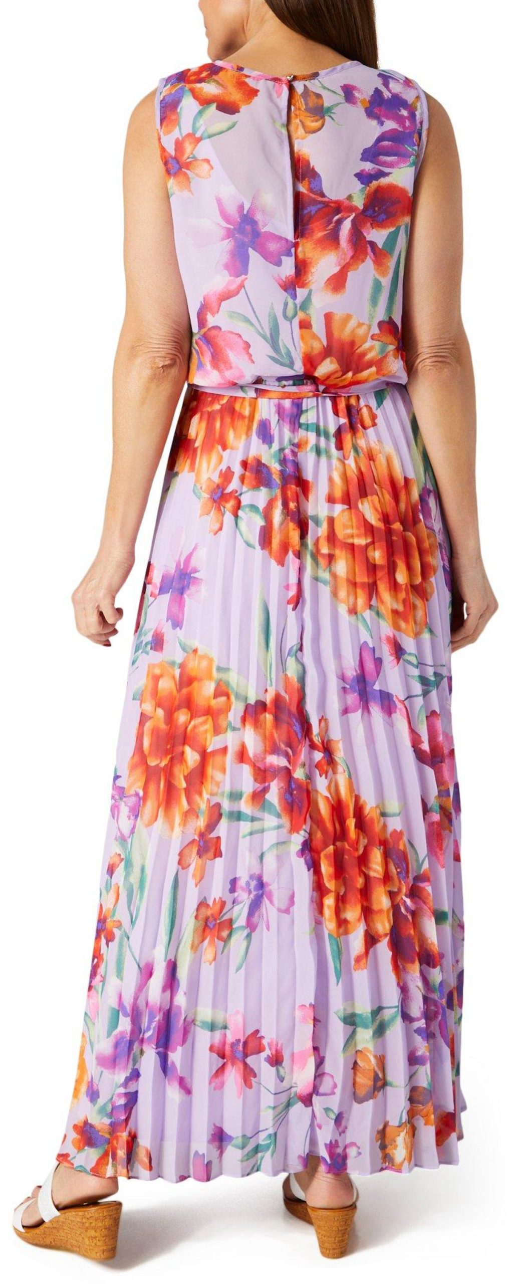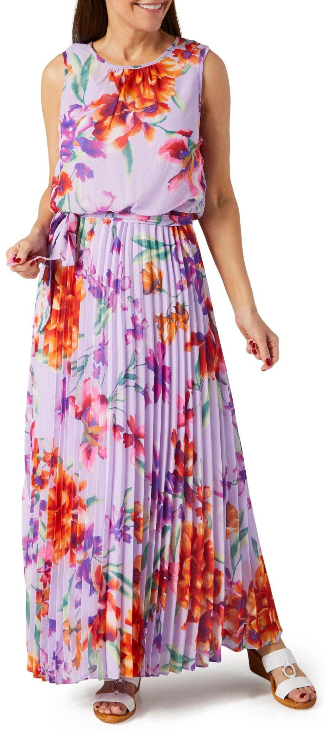 Elevate your wardrobe with our Women’s Sleeveless Floral Maxi Dress. Made from polyester, this dress features a stylish floral design, a pleated skirt, and a high neckline. The back keyhole closure adds a touch of elegance, while the 54-inch length ensures a graceful silhouette. Perfect for any occasion, it combines sophistication and comfort effortlessly.