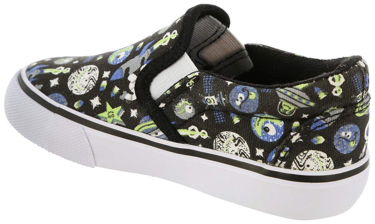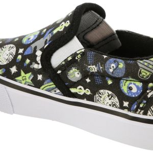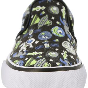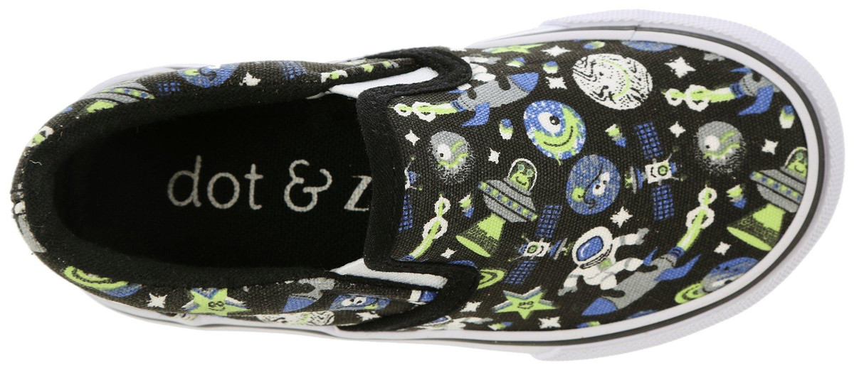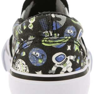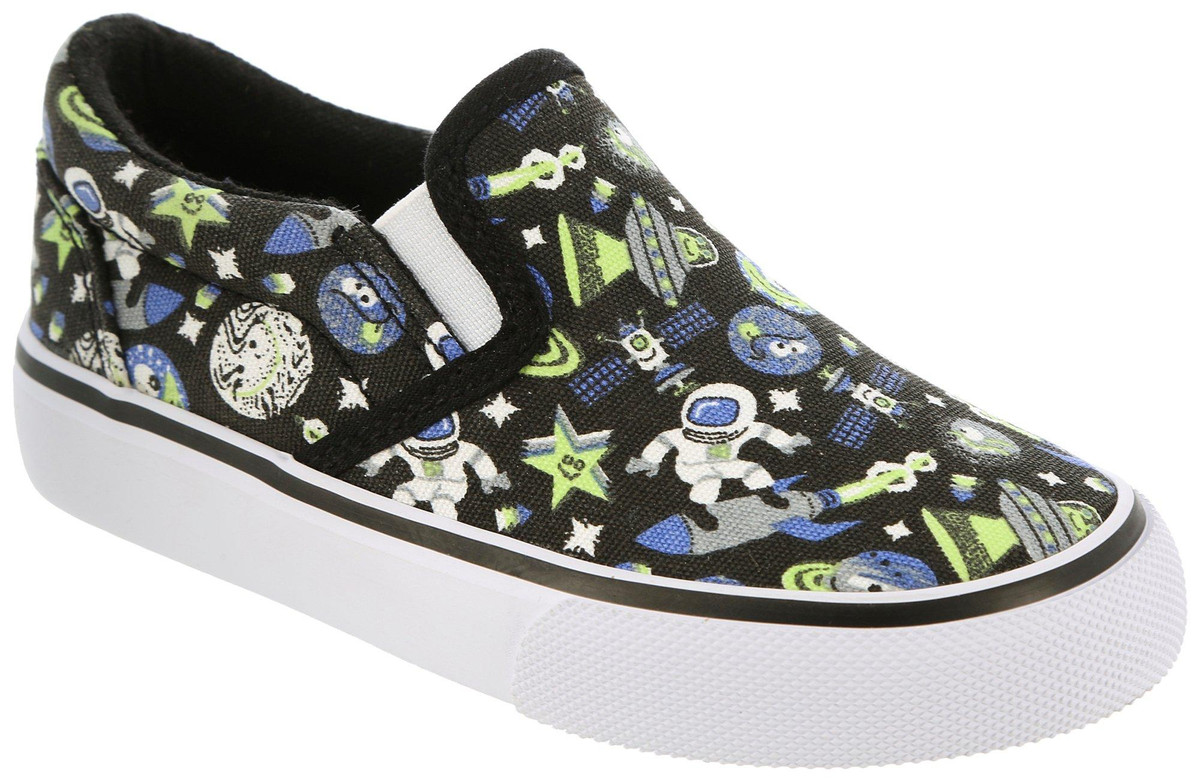 The Dot & ZAZZ Toddler Boys Space Slip-On Shoe is a fun and adventurous footwear choice for little explorers! Designed with a vibrant space-themed print, featuring rockets, stars, and planets, these slip-on shoes ignite the imagination and make getting dressed a breeze.