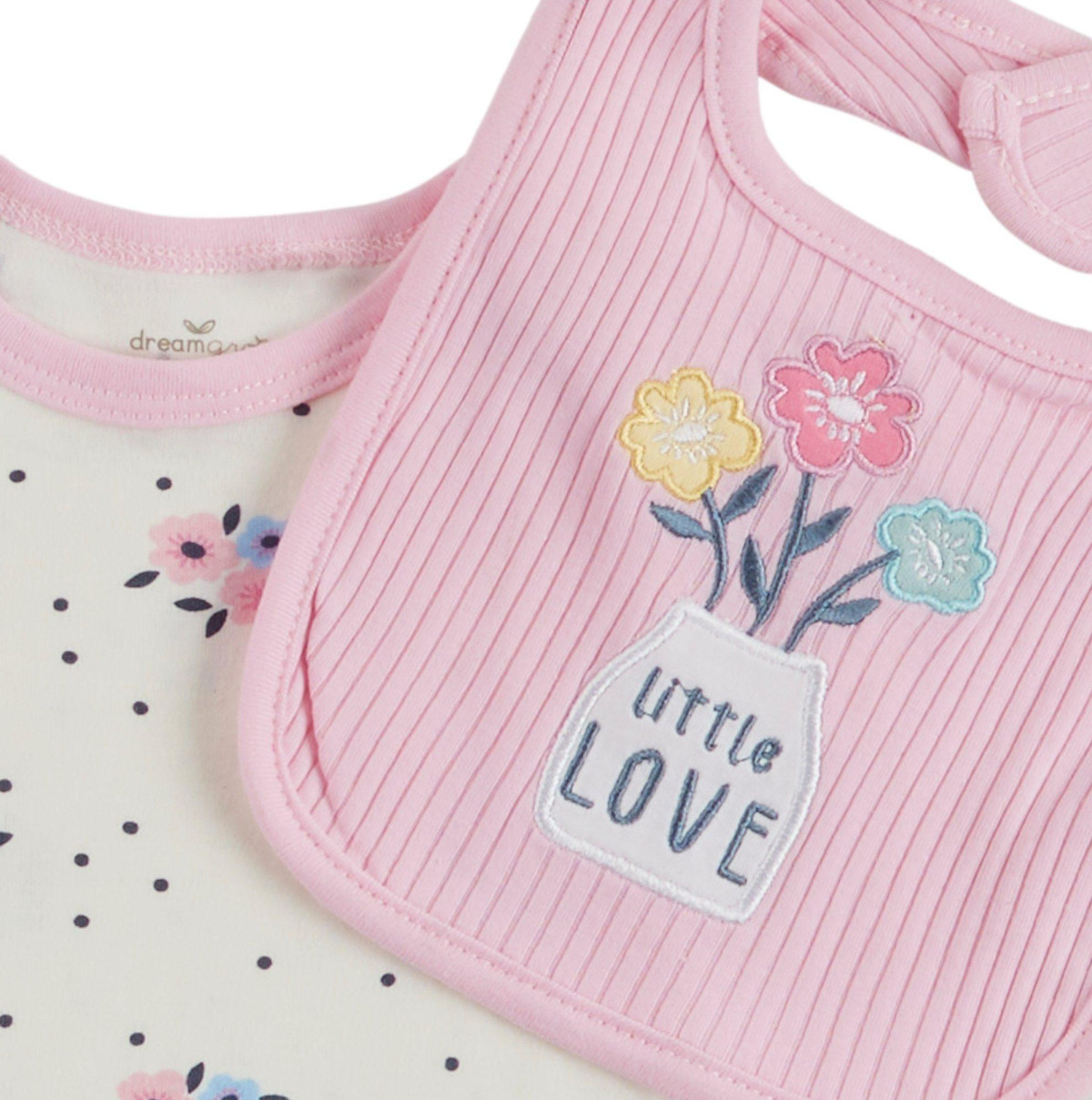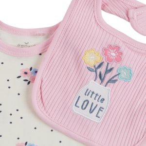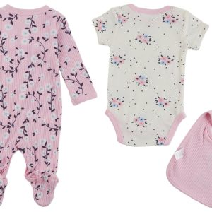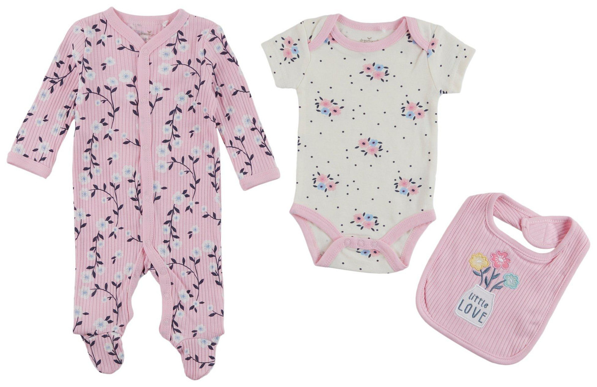 Dress your baby in sweet style with the Baby Girls 3 Pc Bodysuit, Footie and Bib Set. Featuring a soft bib with little love lettering, this coordinated set includes a floral-print bodysuit and matching long sleeve bodysuit with footies for all-day comfort. Made from soft, breathable fabric for delicate skin. Ideal for everyday wear or gifting. Machine wash cold for easy care.