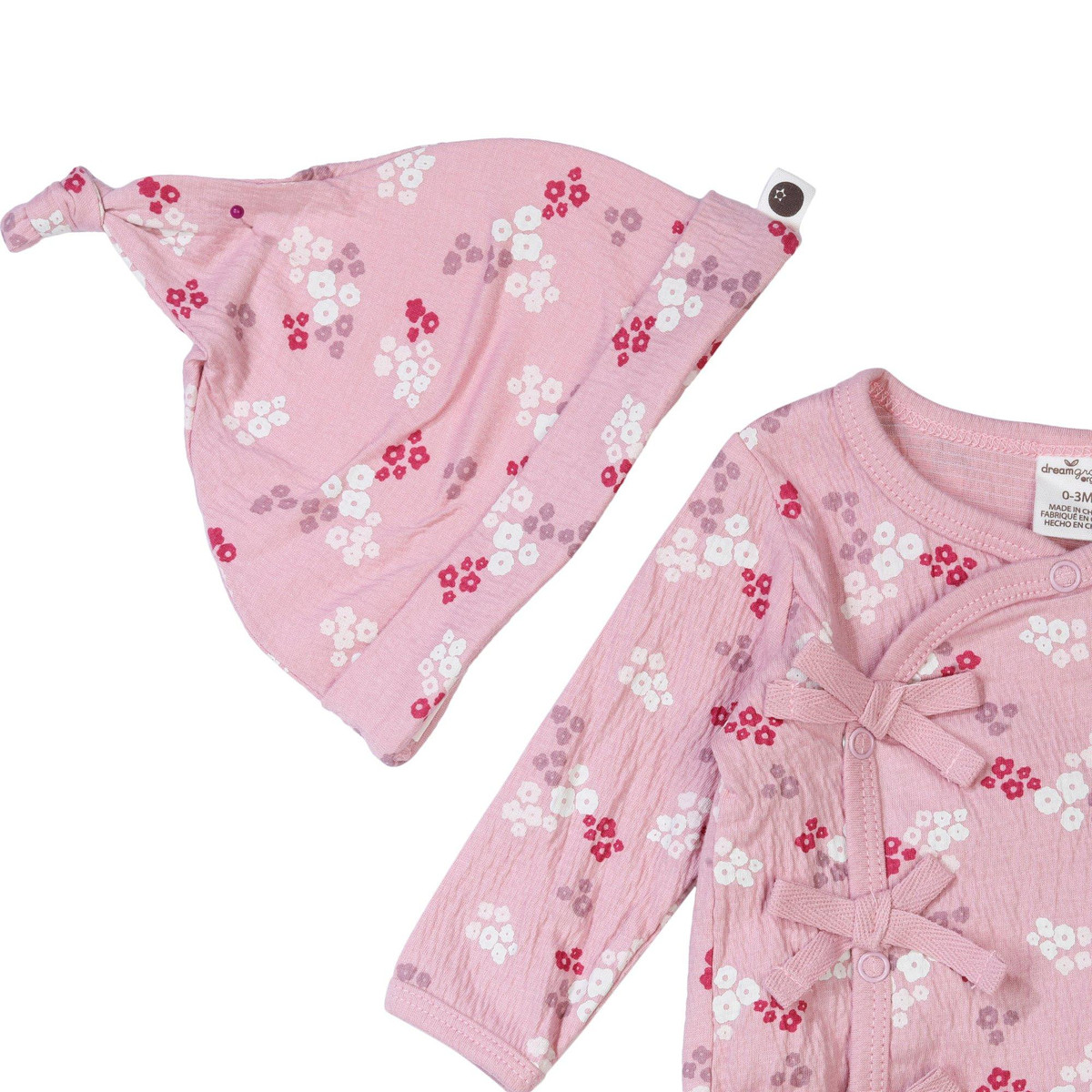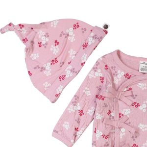 Keep her cozy in coordinated style with this Baby Girls 3 Piece Long Sleeve Cardigan Pant & Hat Set. Made from a soft cotton, polyester, and spandex blend, the set features a purple floral pattern across the long sleeve cardigan, matching footed pants, and hat. Perfect for layering during cooler days. Machine wash cold for easy care.
