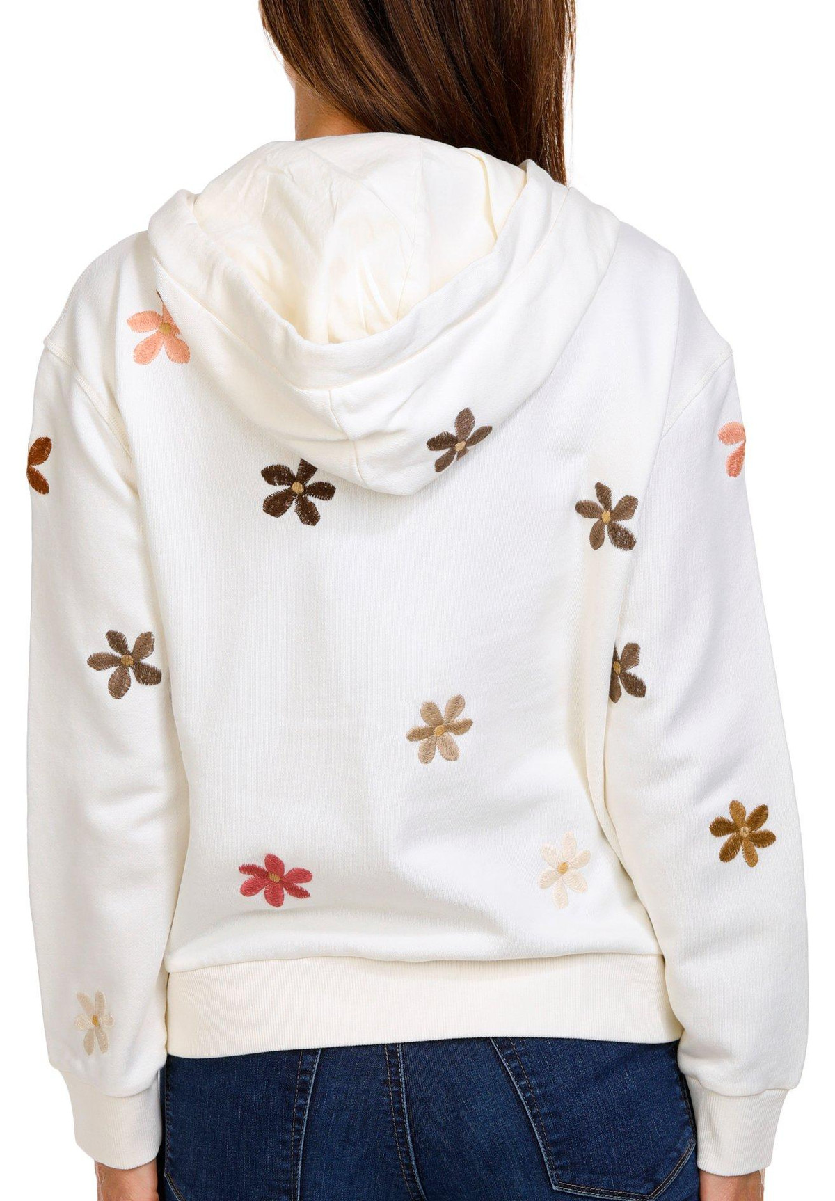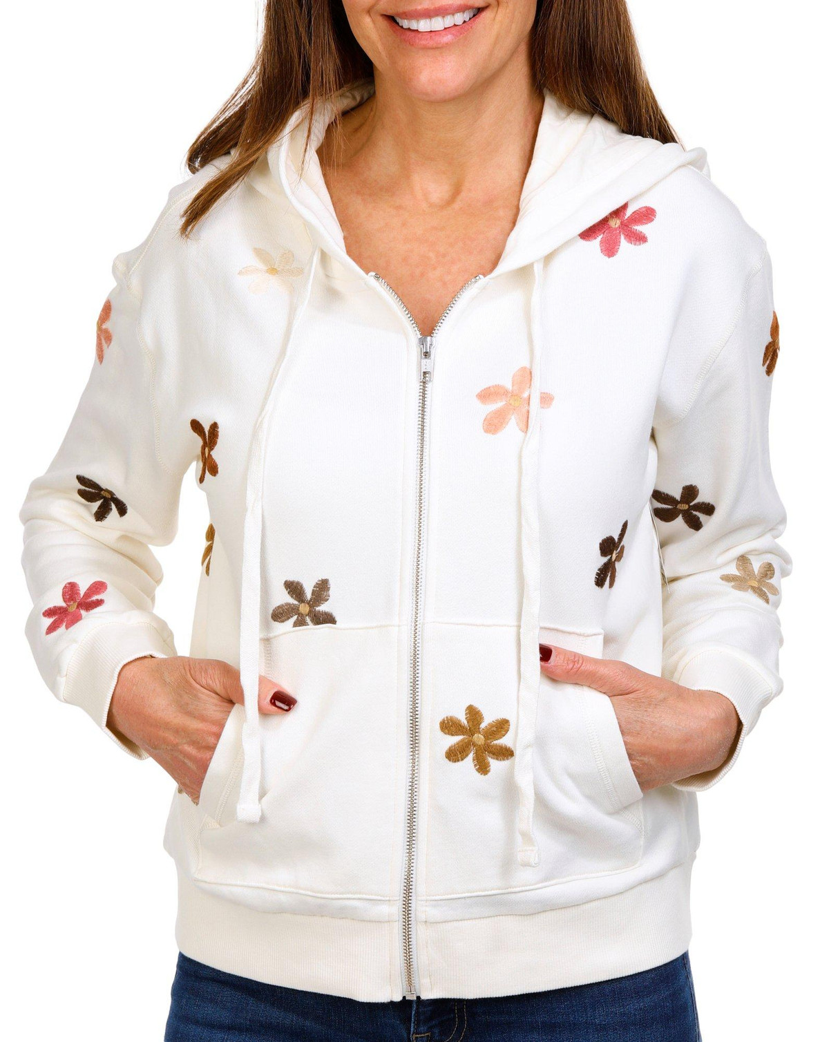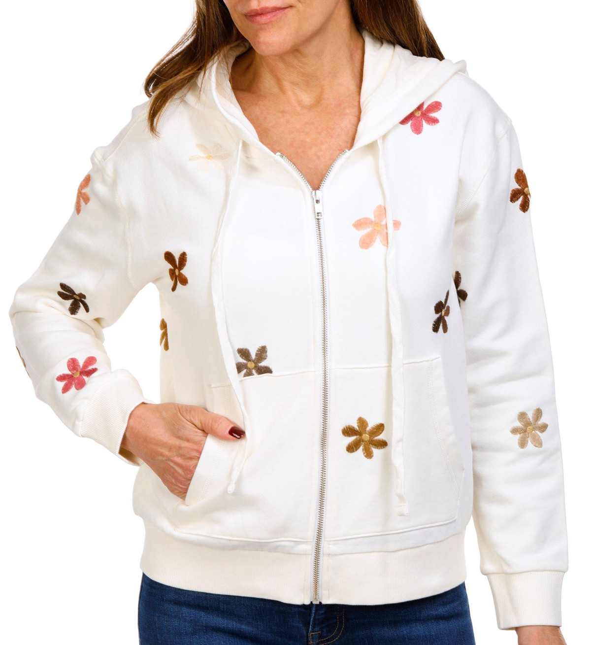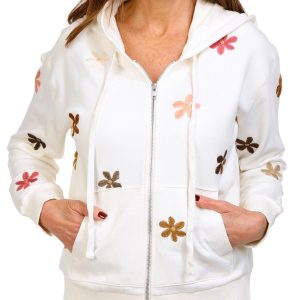 Introducing our Women’s Doo Wop Floral Zip Up Jacket, made from 100% cotton for a soft and breathable feel. This stylish jacket features an elegant embroidered floral design that adds a touch of sophistication to your look. The full front zip-up closure ensures easy wear, while the side seam pockets provide practicality. The hooded drawstring neckline offers added comfort and versatility.