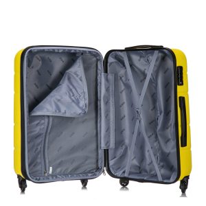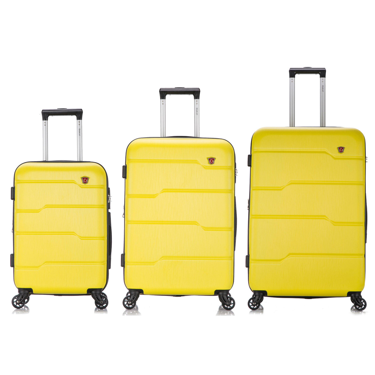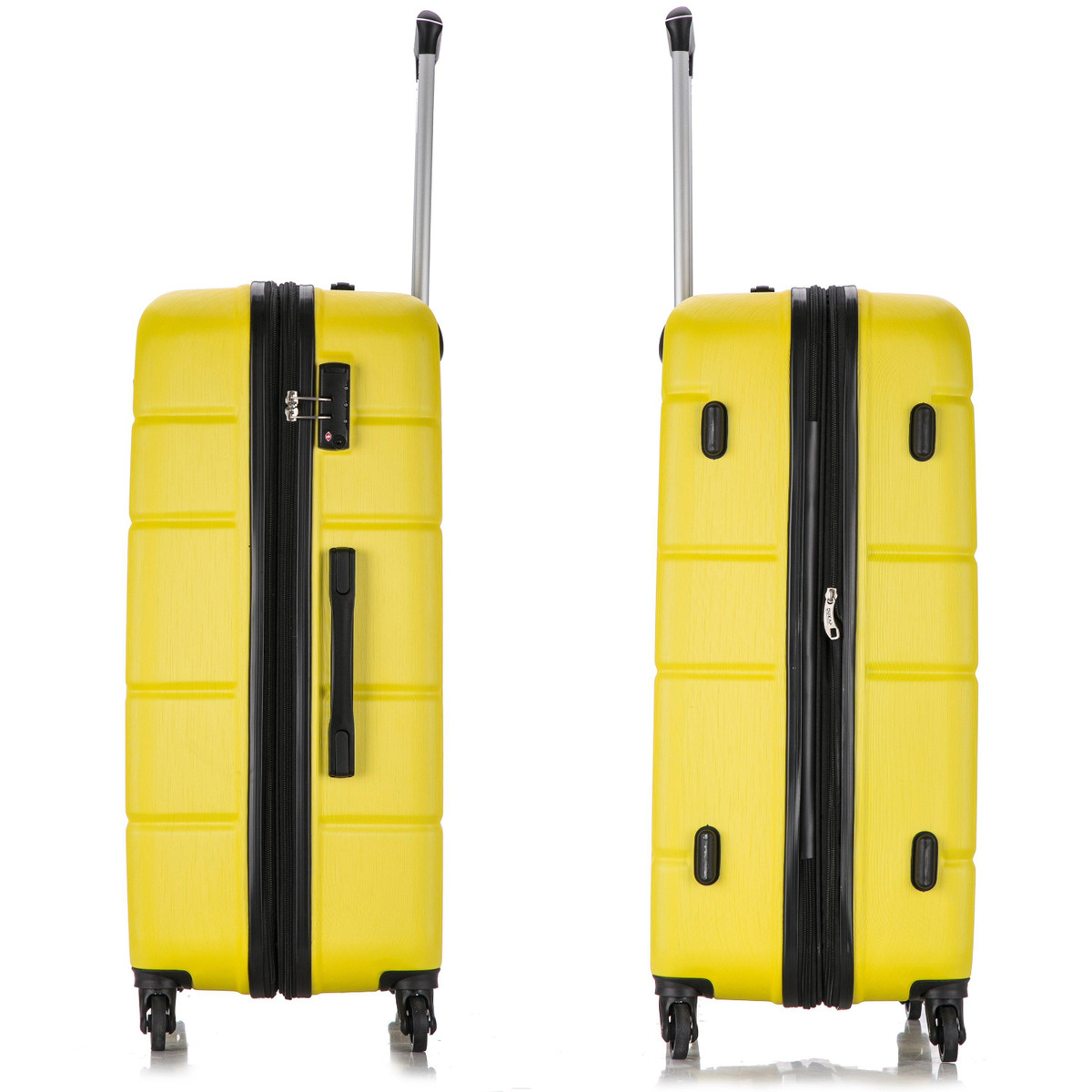 Features: Suitcase expands 2” for additional extra space, 4 dual spinner 360° silent wheels for effortless mobility, Built-in 3 digit TSA approved combination lock, Top and side ergonomic GEL handles for comfortable and easy lifting, Push Button Locking internal retractable trolley system and Smooth gliding oversized zippers. Measures: 20 in = 14.5 in x 9.5 in x 23 in; 24 in = 19 in x 11 in x 26 in; 28 in = 20 in x 12 in x 31 in.