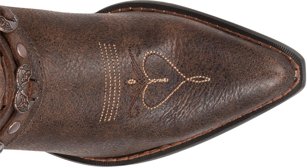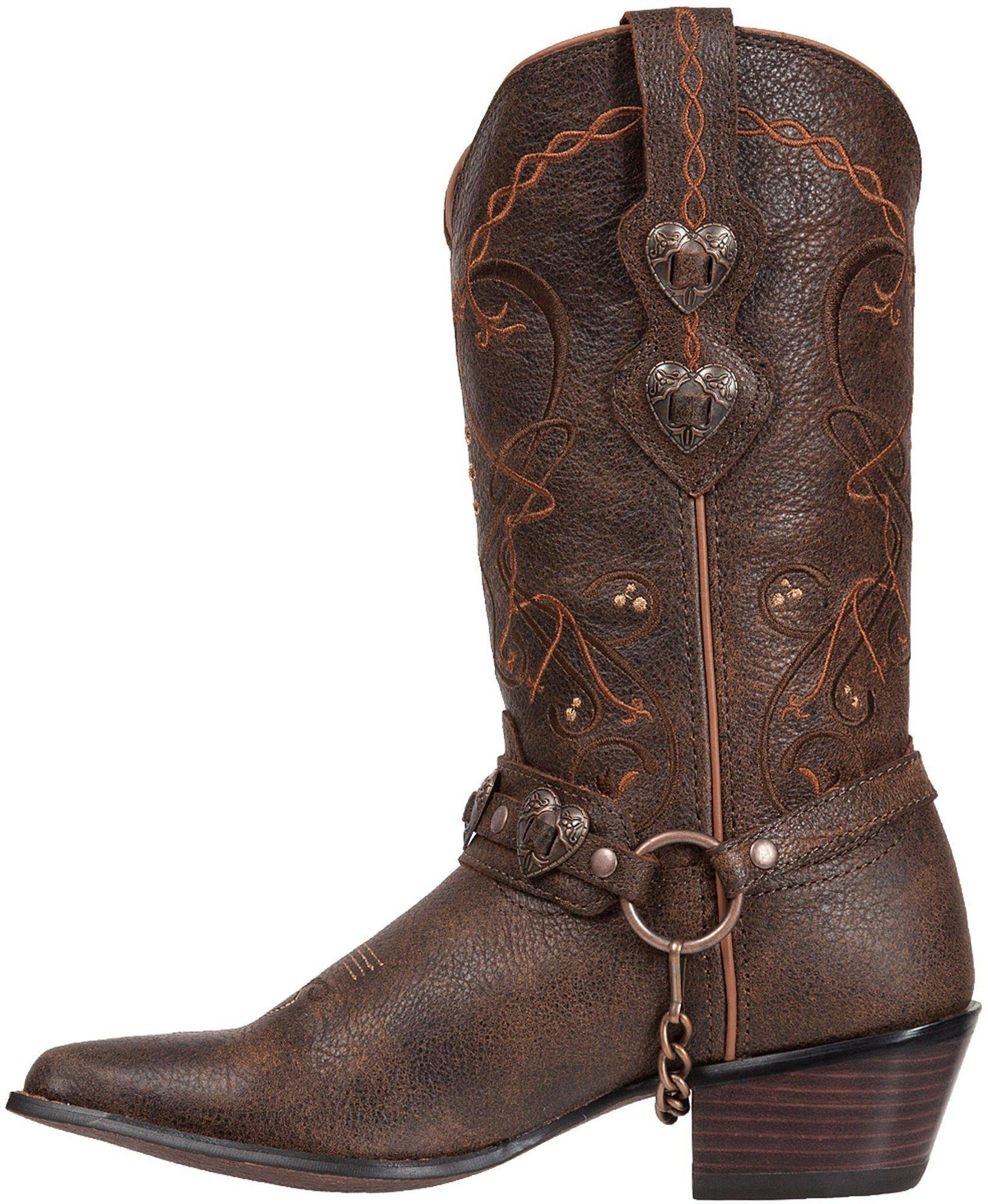 The Heart Buckle cowboy boots by Durango offer a full-grain genuine leather upper with smooth filigree finishing and heart-shaped metal accents. These boots offer a cushion flex insole, tempered steel shank, and a soft mesh lining. Boot shaft measures 11” tall.