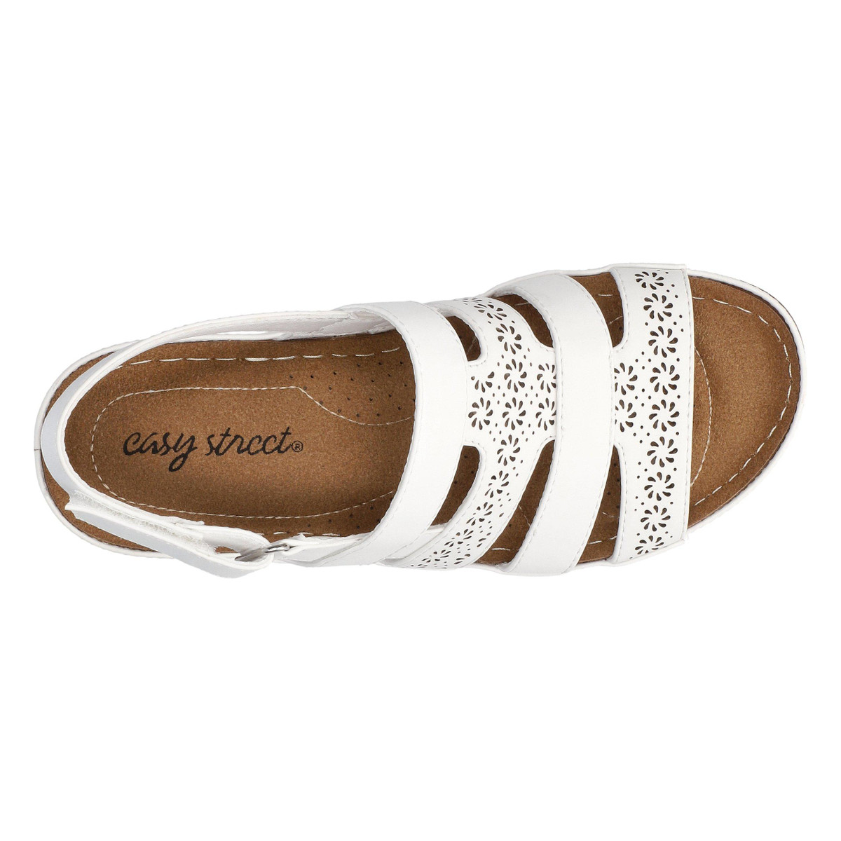 Embrace the summer with confidence and style in the Alexi sandal by Easy Street. Crafted with attention to detail, the trendy perfed upper brings a playful touch. The lightweight and flexible artisan construction, along with the unique slingback design, ensure comfort. The stitched heel-to-toe padded footbed and the adjustable hook and loop closure provide a personalized, comfortable fit for every step.