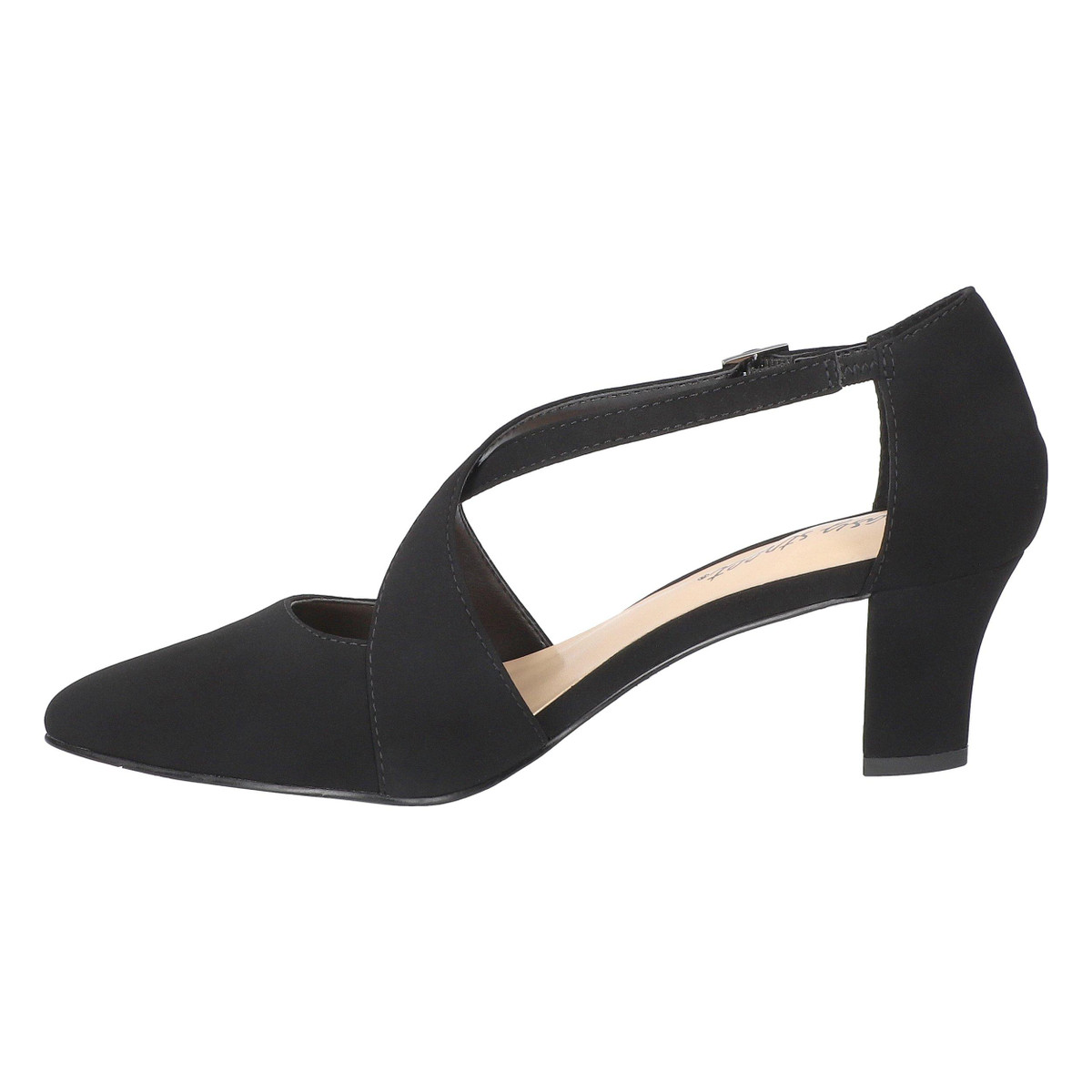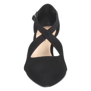 Add sophistication to your look with the Elegance by Easy Street. The criss cross upper design, enhances its dress heel and tapered toe. Comfort features include inside goring and an adjustable buckle a custom fit, padded insole and a flexible outsole for effortless wear.