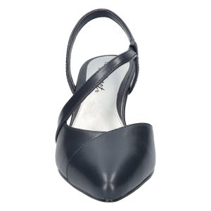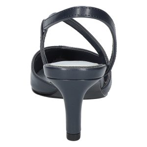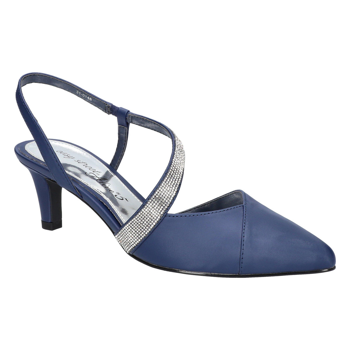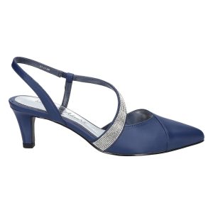 Reward yourself with the Emerald slingback pump by Easy Street. Designed to be on trend, the asymmetrical upper design will add a sophistication to your outfit. The Easy Flex outsole combined with a heel to toe padded insole will help make you look and feel great throughout the day! The Lamy and satin uppers offer a stone detailing to make the Emerald a perfect companion for a celebratory occasion.