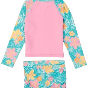 Introducing the Baby Girls 3 Pc Striped Rash Guard Swim Set, made from a durable blend of polyester and spandex for comfort and flexibility. This stylish set includes a long sleeve quarter zip rash guard, shorts, and a hat, all featuring a vibrant stripe print. Perfect for beach days or poolside fun, this swim set offers excellent sun protection and ensures your little one stays comfortable and fashionable while enjoying water activities.