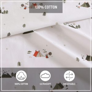 Cozy up with the Eddie Bauer Cascade Camping Sheet Set, where rugged charm meets comfort. Crafted from crisp, breathable 100% cotton percale, this set features outdoorsy prints that echo the spirit of the wilderness. The fitted sheet stays snug through every night, and OEKO-TEX dyes ensure its made with care. Machine washable for easy, no-fuss upkeep.