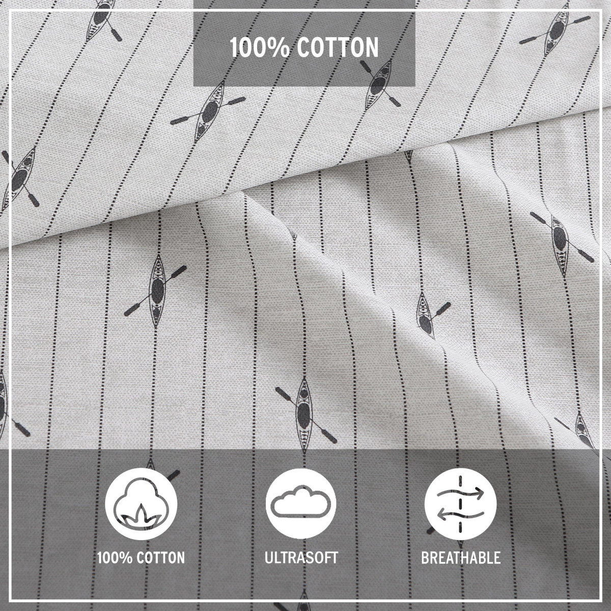 Set off on a cozy escape with the Eddie Bauer Downstream Sheet Set. Inspired by flowing rivers and wild trails, this 100% cotton percale set offers crisp, breathable comfort for every nights journey. The snug fitted sheet stays in place, and OEKO-TEX dyes keep it eco-friendly. Machine washable for easy care.