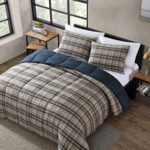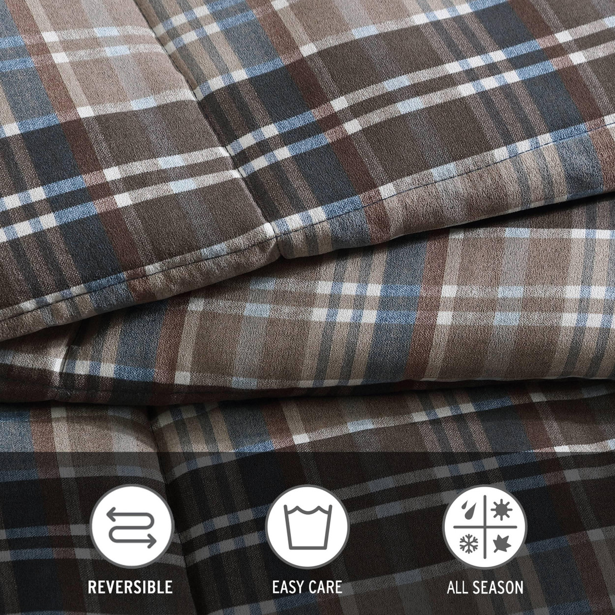 The Eddie Bauer Rugged Plaid Duvet Cover Set features super soft micro-suede on the front side, while the back features a brushed microfiber. Each duvet features double needle stitch detailing as well as inner corner ties. Each set includes two matching shams for easy styling (twin size includes one sham). Made thoughtfully and sustainably using non-toxic dyes. Pairs perfectly with the Eddie Bauer sheet collection, sold separately. Machine washable for easy care.
