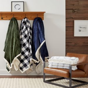 Stay warm in style with the Eddie Bauer Solid Ultra Soft Plush Fleece Blanket. Fully reversible, it features ultra-soft plush on one side and cozy faux shearling on the other. Accented with the iconic Eddie Bauer logo patch, it is perfect for your sofa or bed. OEKO-TEX certified and machine washable for easy care.