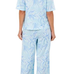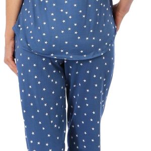 The Cozy Luxe Womens Capri Pajama Set offers ultimate comfort with its soft, breathable cotton-spandex blend. The relaxed-fit top with a V-neck and capri-length pants with an elastic waistband ensure a flattering, comfortable fit. Perfect for lounging or sleeping, its stylish and easy to care for. The top length measures approximately 26 in. The inseam measures approximately 23 in. Fabrication 95% rayon, 5% spandex.