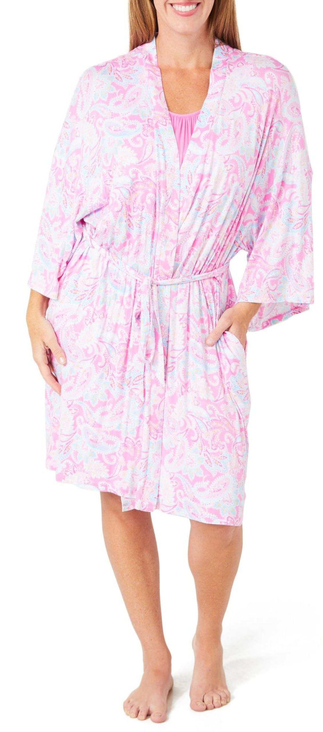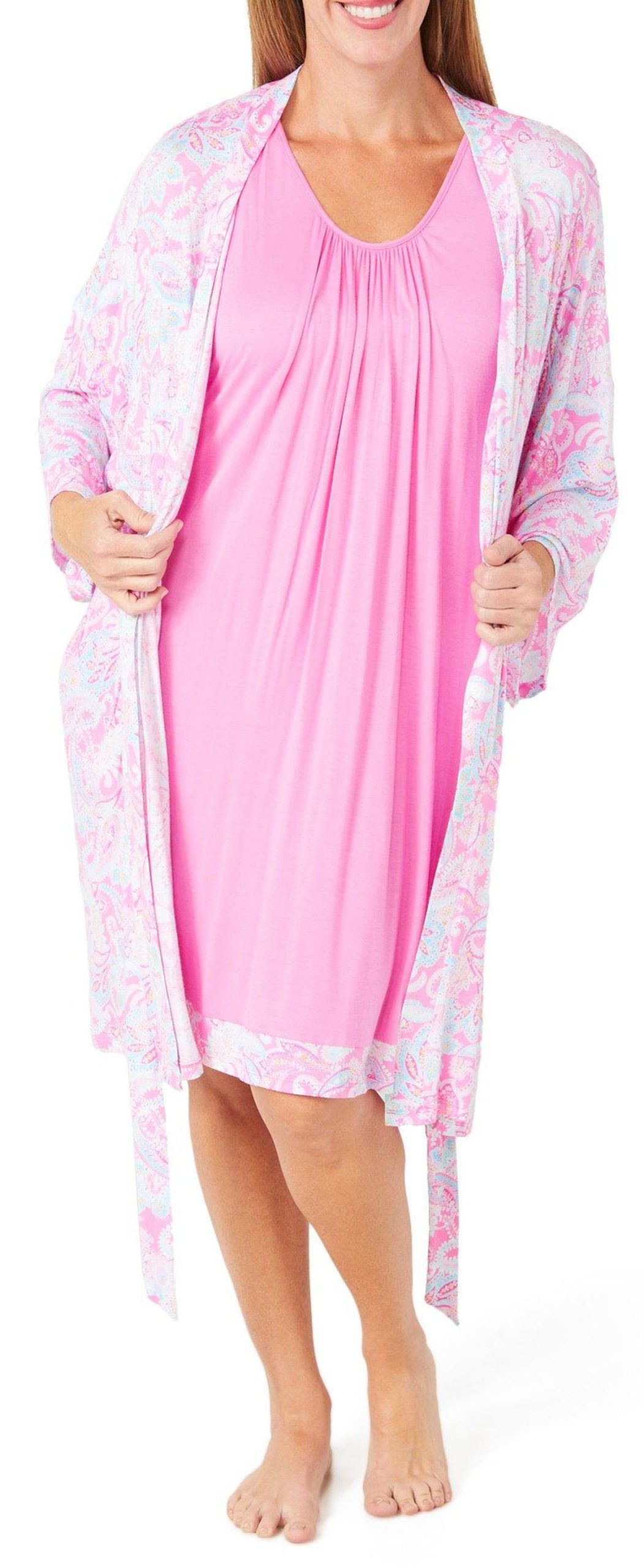 Relax in comfort and style with this elegant pink nightgown and matching robe set. Made from soft, breathable fabric, it features a flowy fit and delicate printed robe for a cozy yet polished bedtime look. Perfect for lounging or gifting.