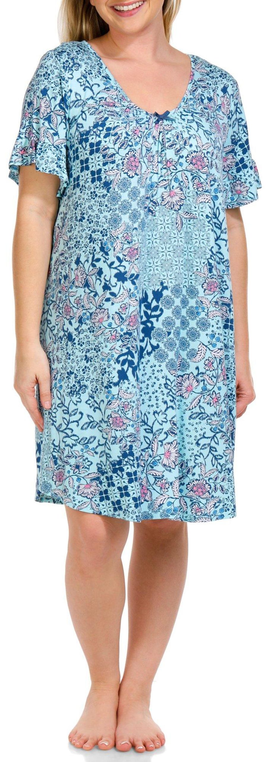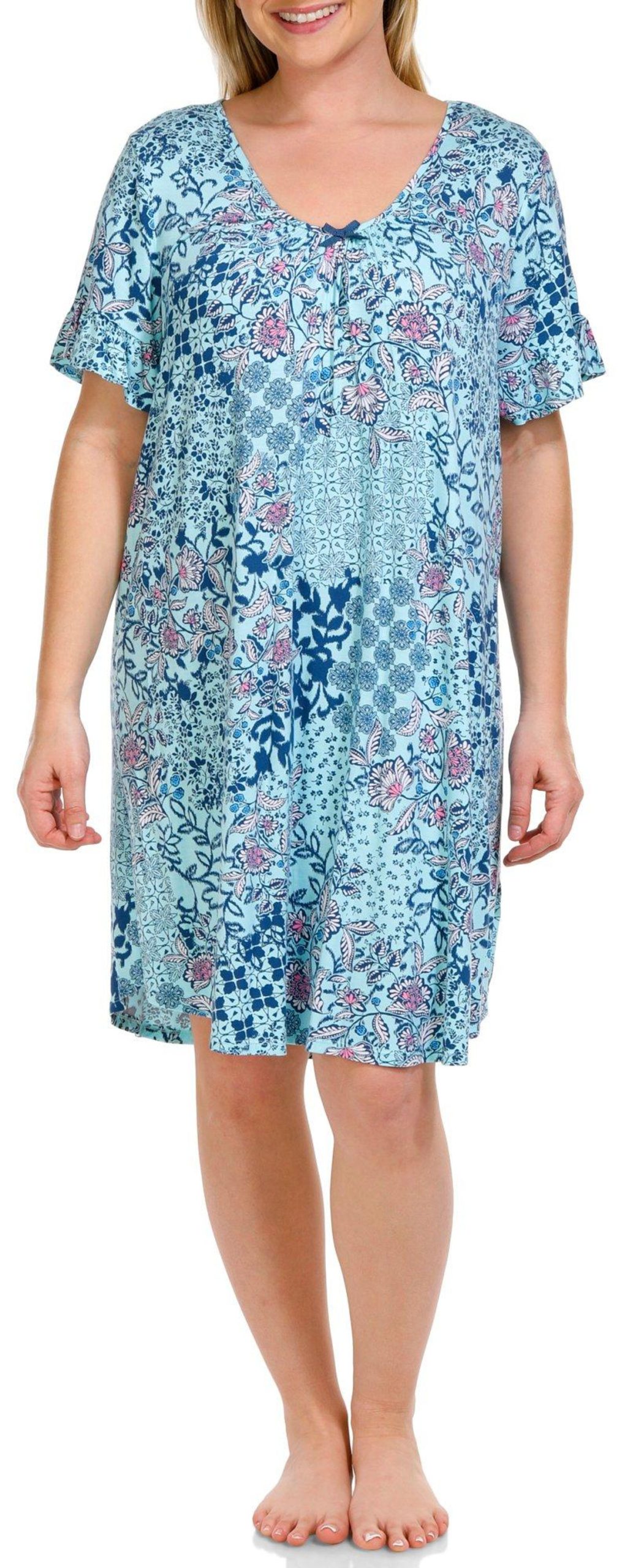 This women’s floral short sleeve chemise, made from a blend of rayon and spandex, offers a perfect mix of comfort and style. The stylish floral print adds a touch of elegance, while the V-neckline provides a flattering look. The short sleeves ensure a relaxed fit, making this chemise ideal for a cozy night’s sleep or lounging at home. Embrace both charm and comfort with this delightful chemise!