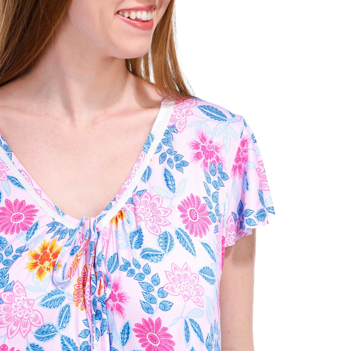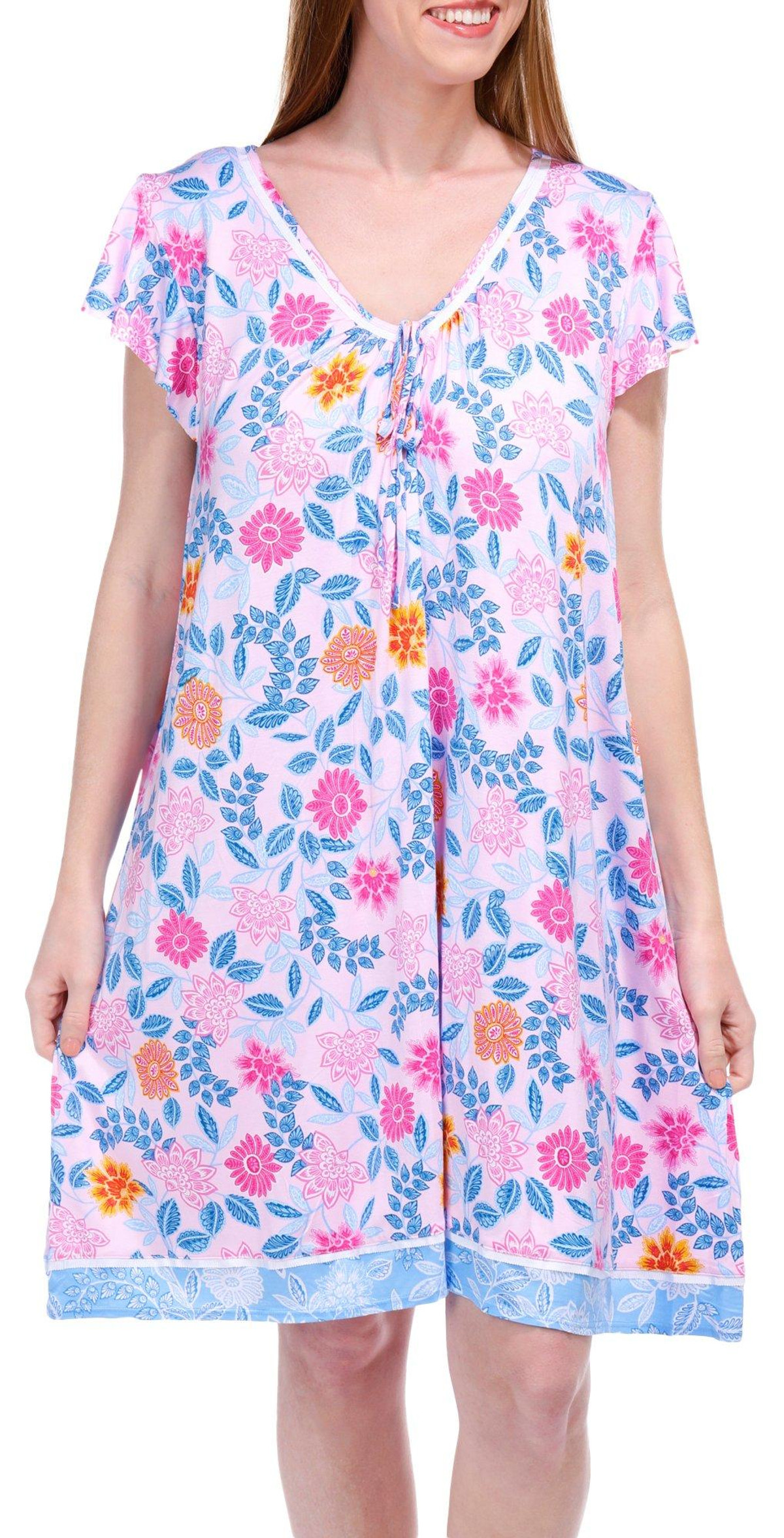 Introducing this charming Short Sleeve Chemise Nightgown, featuring a delightful print that adds a touch of elegance. The tied neckline detail provides a graceful finish, making it perfect for a restful night’s sleep or lounging in style. Crafted from soft, breathable fabric, this nightgown ensures you stay comfortable all night long. Fabrication is 95% rayon, 5% spandex.