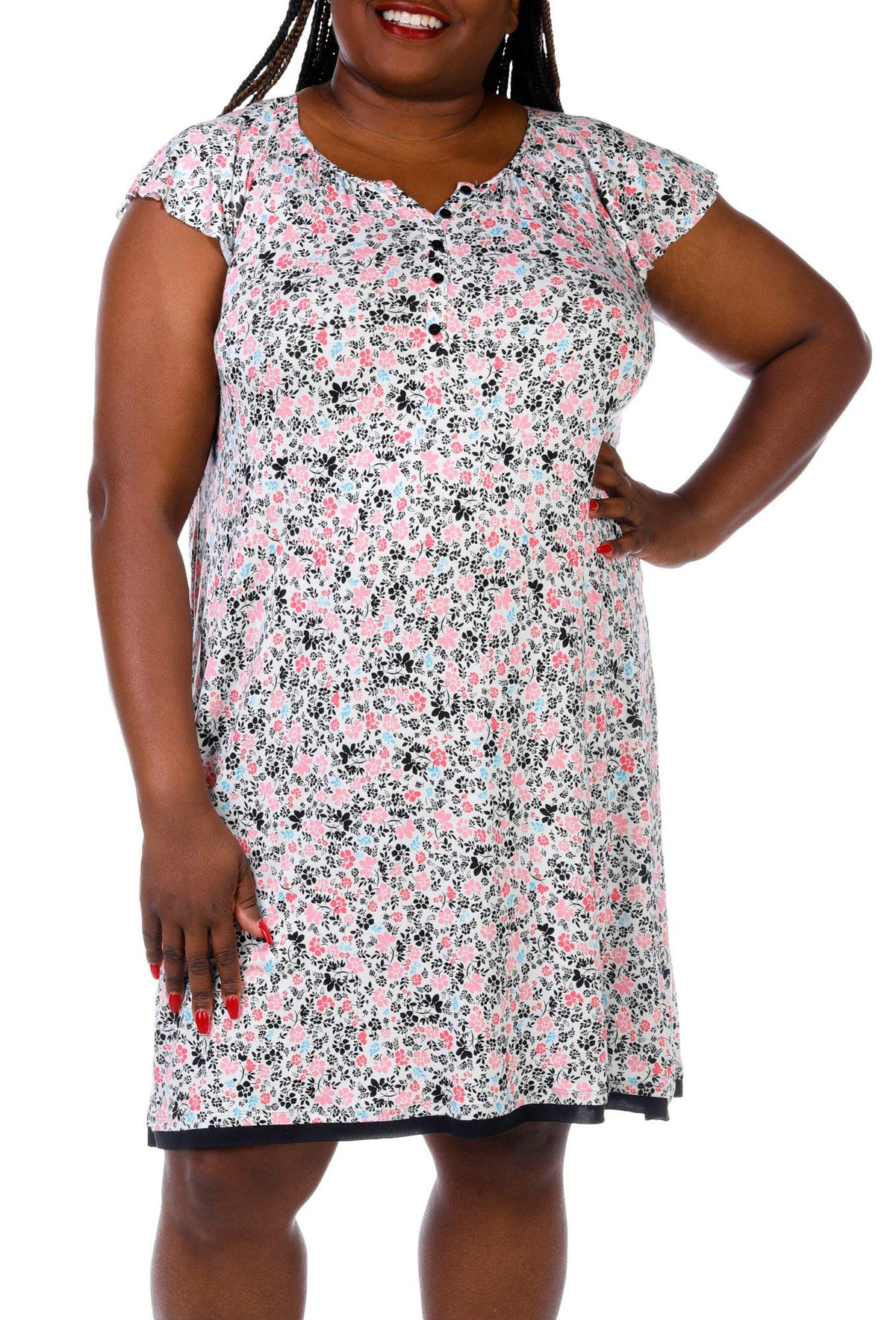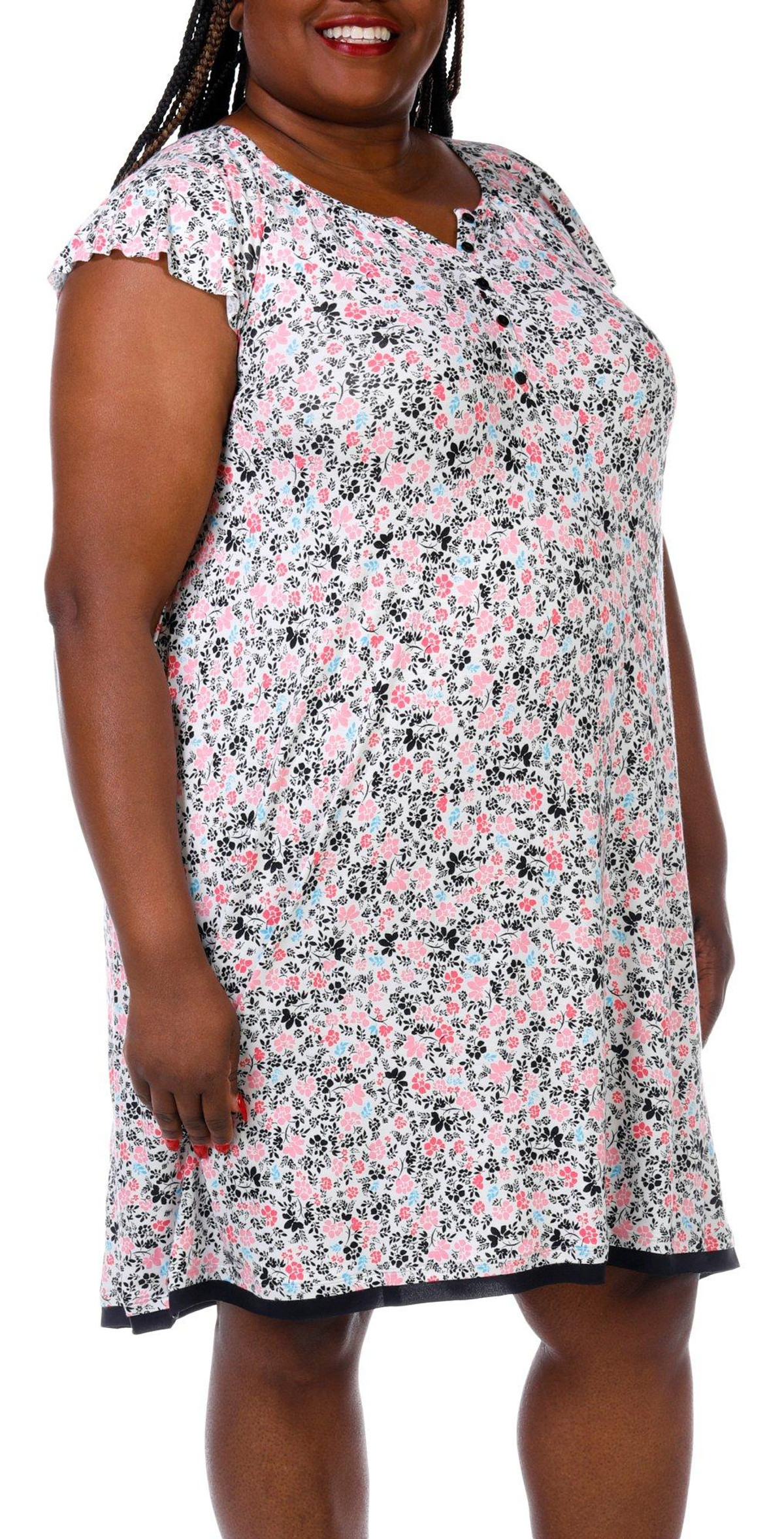This womens night gown features a soft floral print with short sleeves and a split neckline for a relaxed feel. Made from gentle fabric, it offers comfort and ease for a restful night or cozy lounging. Fabrication 95% rayon, 5% spandex