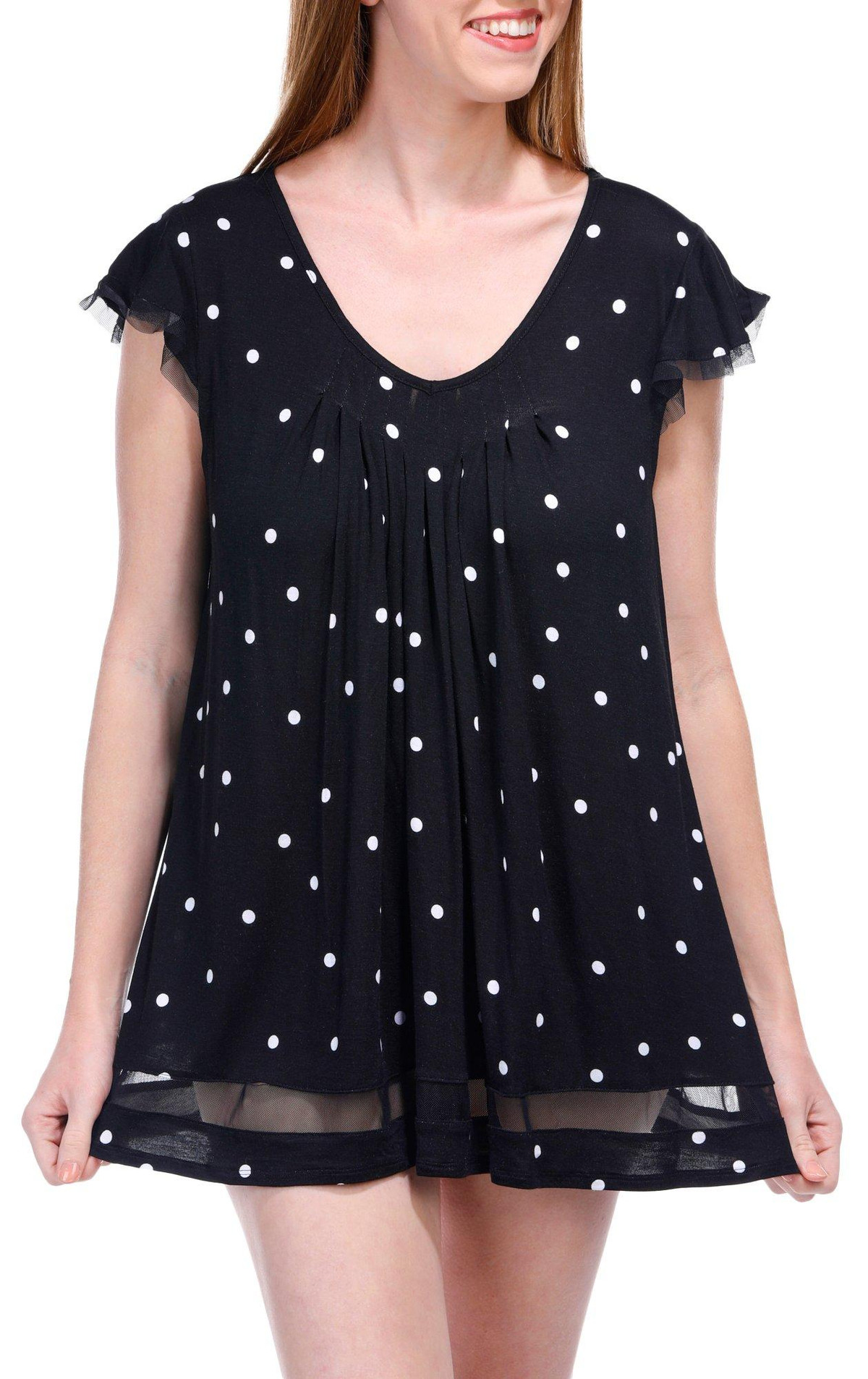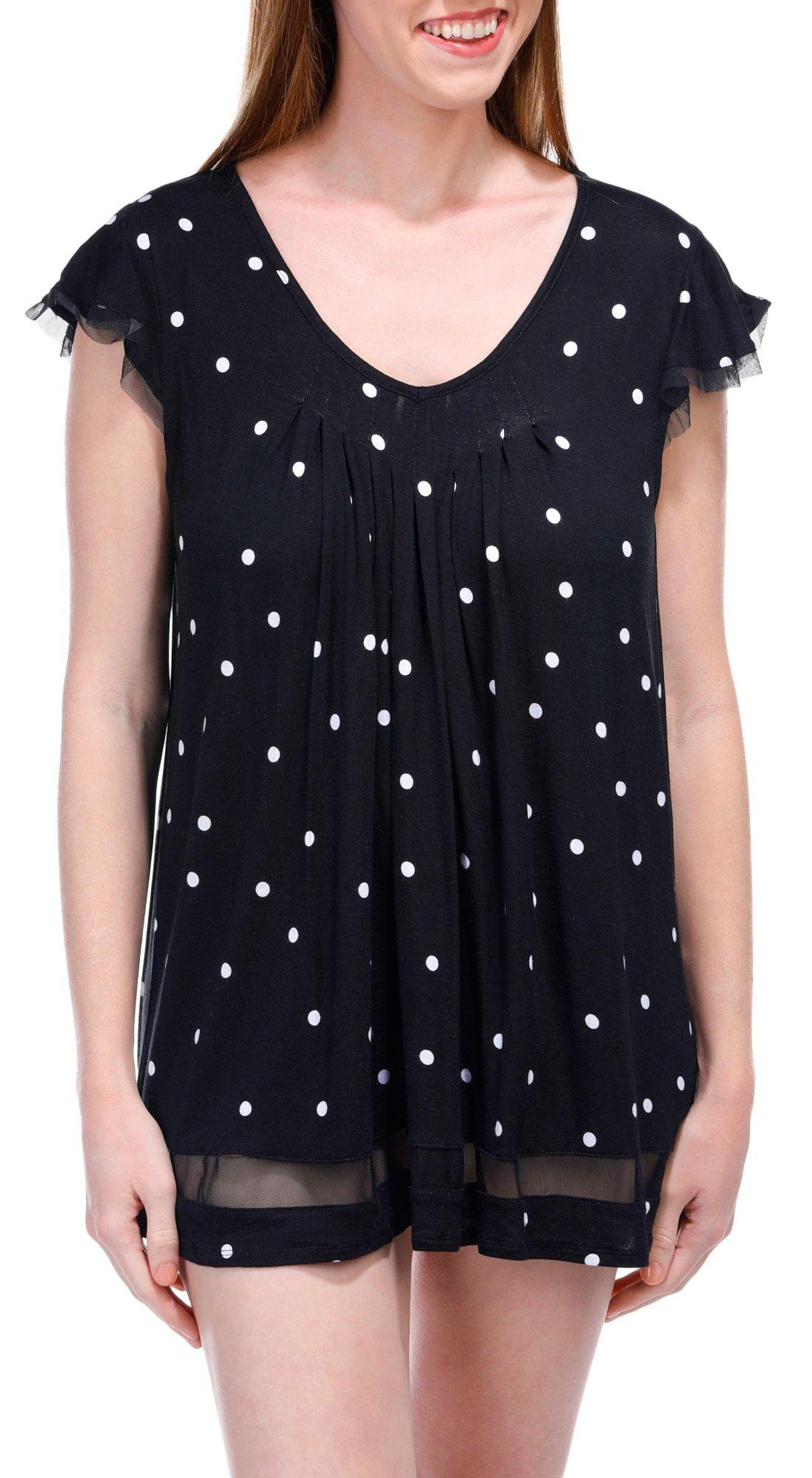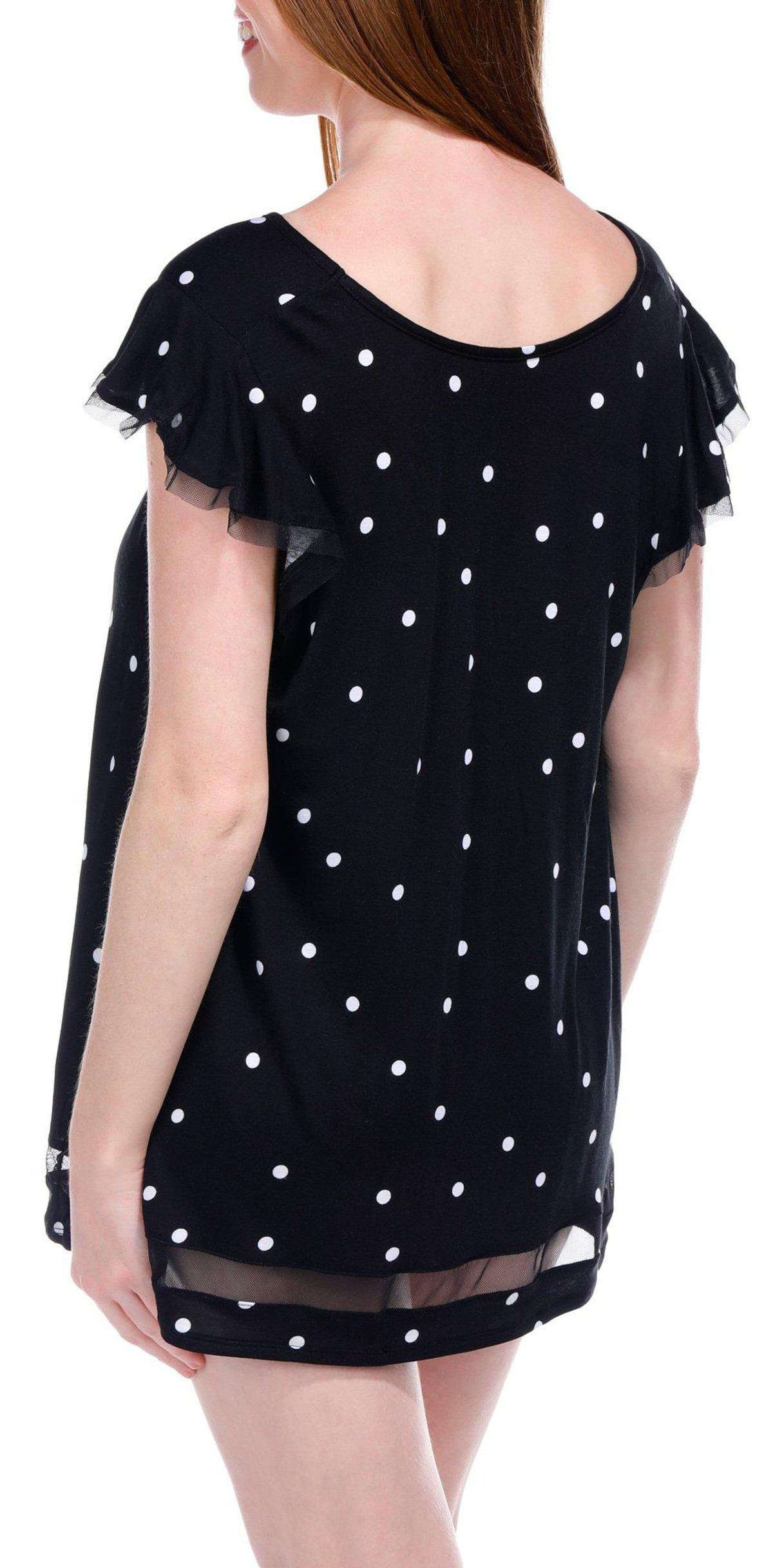 Ellen Tracy Womens Short Sleeve Polka Dot Pajama Shirt