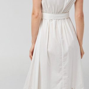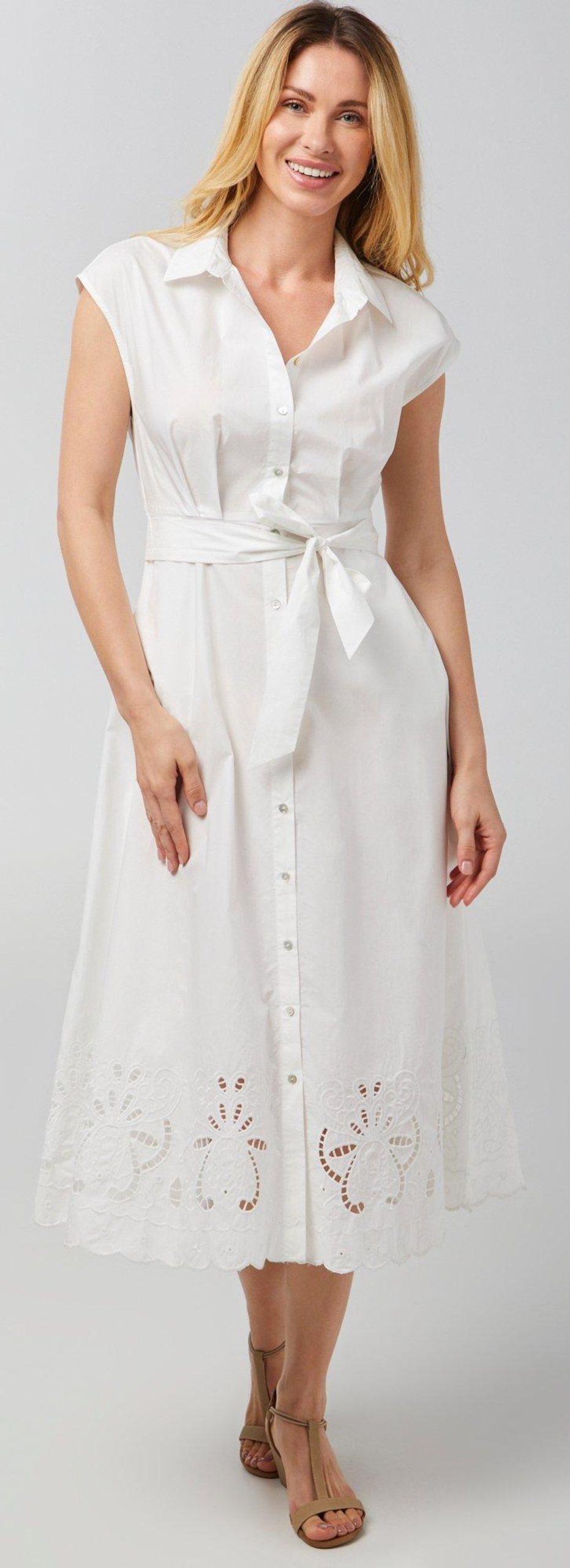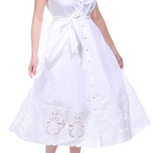 The Sleeveless Maxi Dress is a perfect blend of style and practicality. Featuring double side pockets and a waist tie, this dress offers both convenience and a flattering fit. The open eyelet trim adds a delicate and charming detail, while the buttoned front enhances its overall elegance. Ideal for both casual and dressy occasions, this versatile dress ensures you look effortlessly chic.