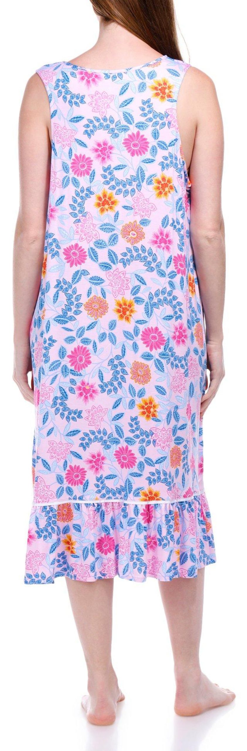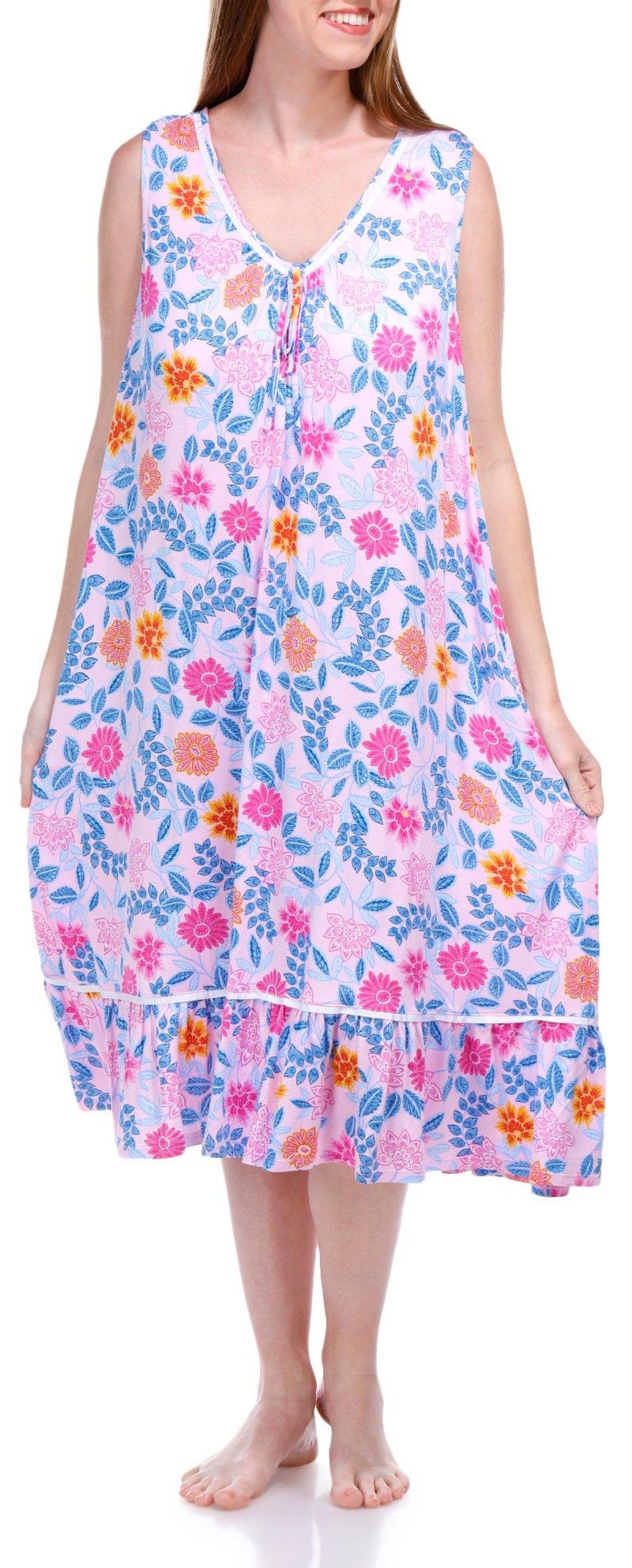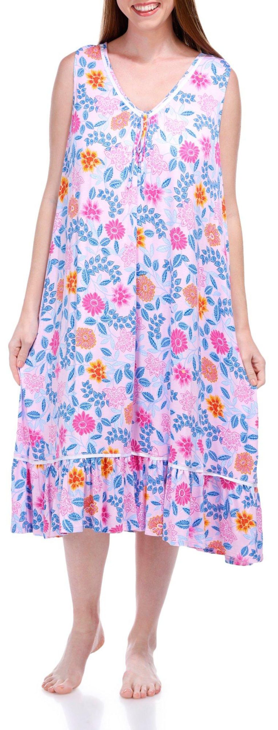 Introducing this elegant Sleep Gown, adorned with a beautiful floral print that adds a touch of charm. The delicate lace details enhance its sophisticated appeal, while the tied neckline detail provides a graceful finish. Crafted from soft, breathable fabric, this sleep gown ensures you stay comfortable throughout the night. Perfect for a restful sleep or lounging in style, this piece is a must-have addition to your nighttime wardrobe. Fabrication is 95% rayon, 5% spandex.