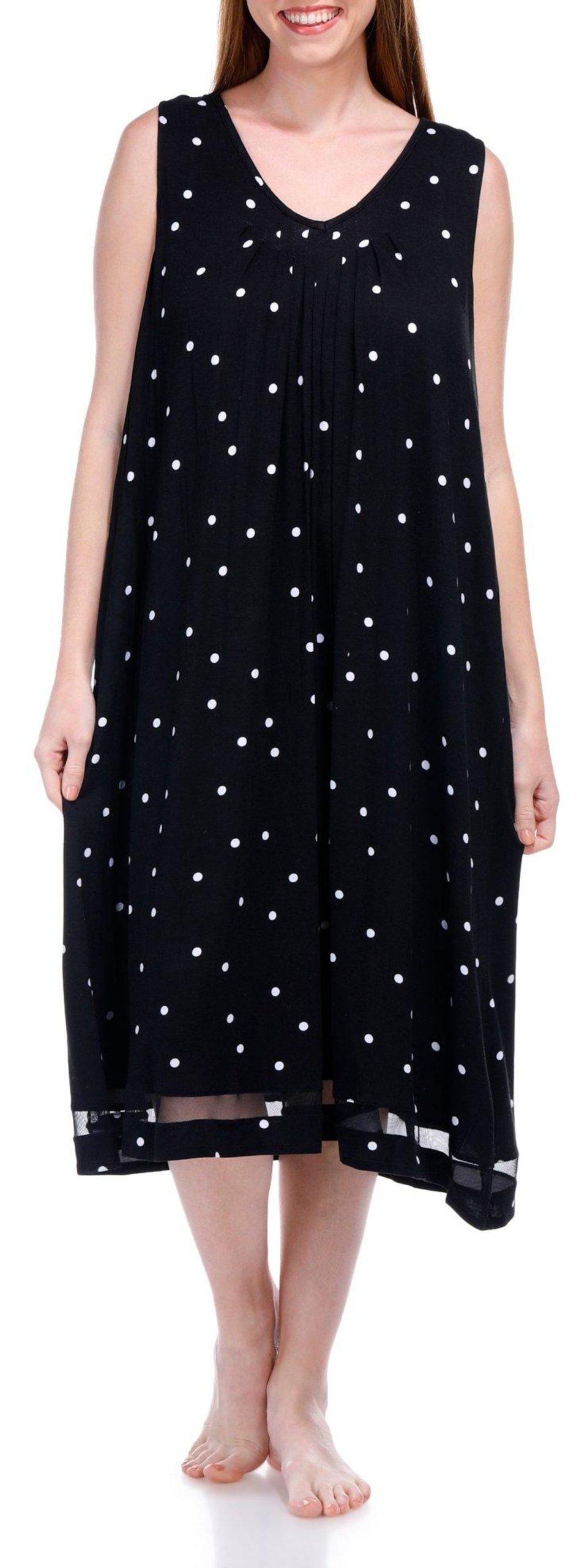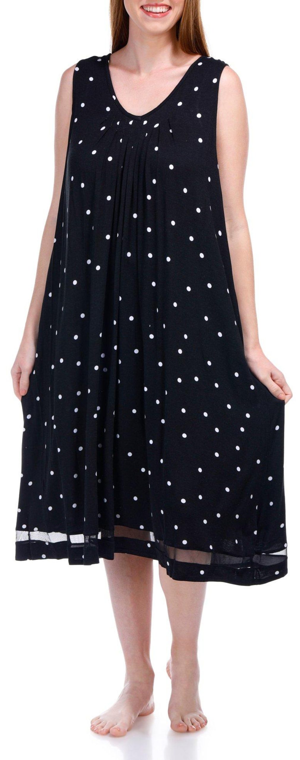 Introducing the Women’s Sleeveless Polka Dot Print Night Gown, crafted from a soft blend of rayon and spandex. This night gown features a stylish polka dot print that adds a touch of elegance to your nighttime wardrobe. The scoop neckline offers a comfortable fit, while the 42-inch length provides ample coverage. Perfect for a restful night’s sleep, this night gown combines comfort and style effortlessly.