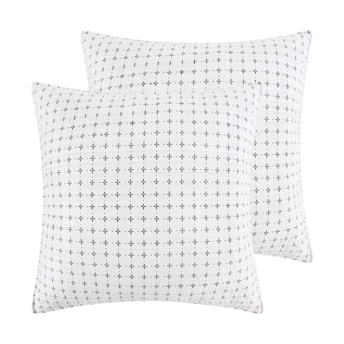 The Etrada Quilted Euro Sham Set of 2 by Levtex Home is inspired by colors and textures of the American Southwest. Offered in white and grey, this design will immediately transform your bedroom. These shams feature mini cross dot detail on white. The Euro Sham Set of 2 (26x26in.) is microfiber, quilted with a cotton rich filler and is machine washable. Pillow inner not included. Enjoy for years to come!