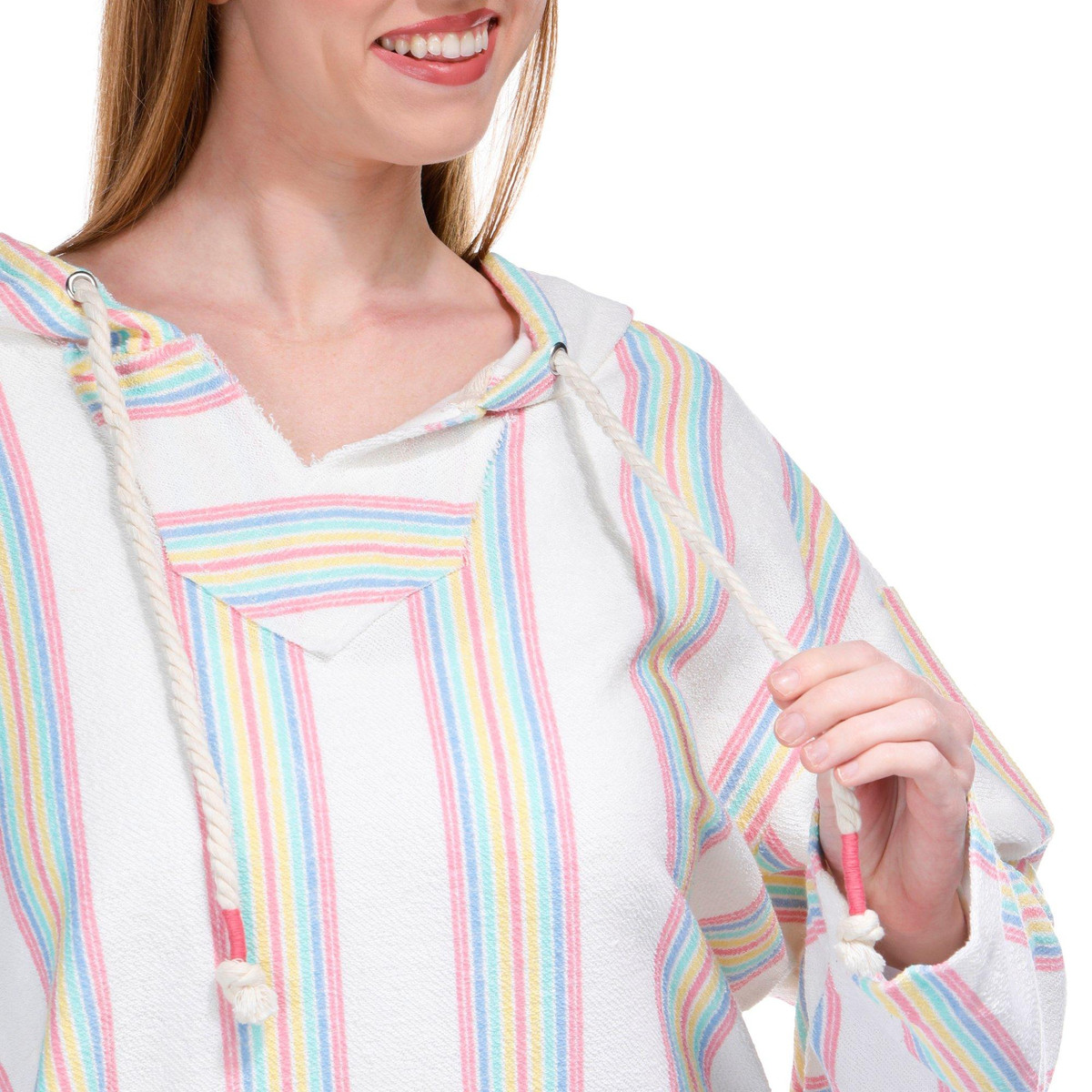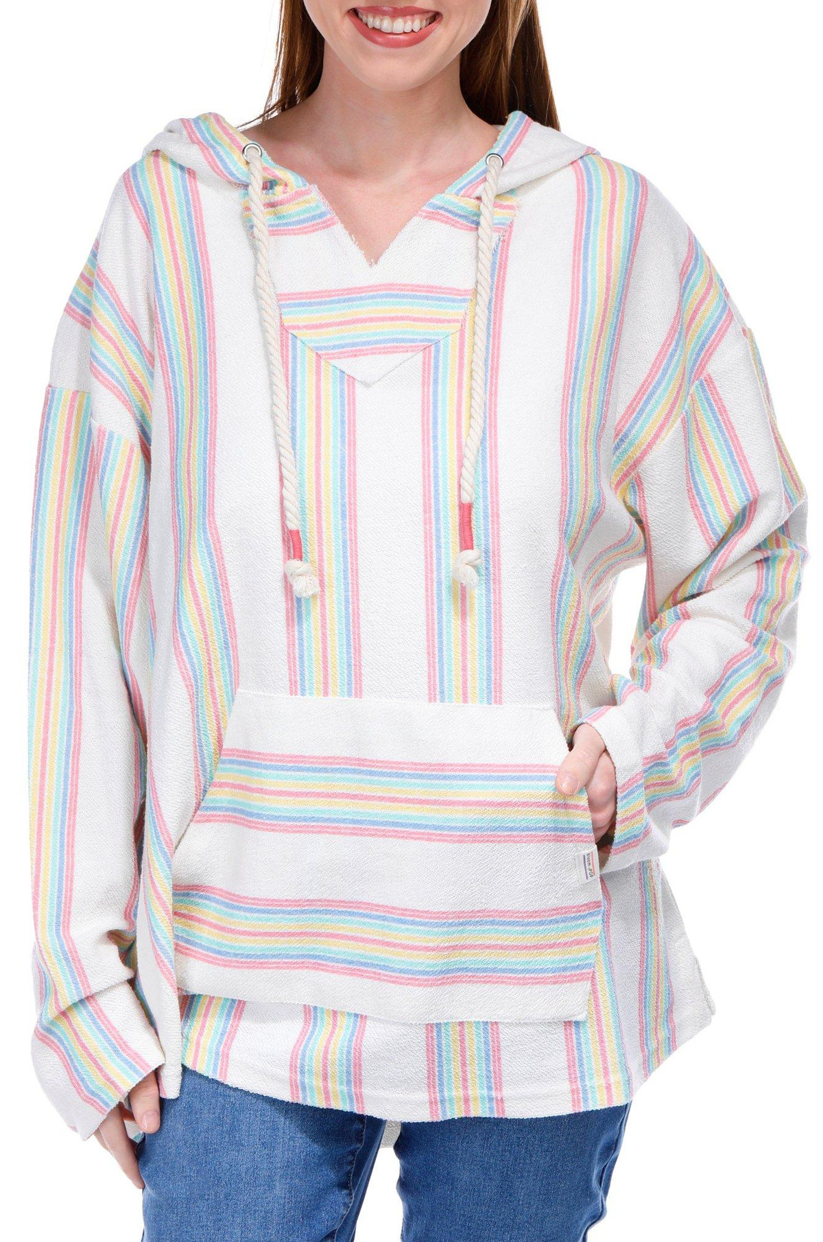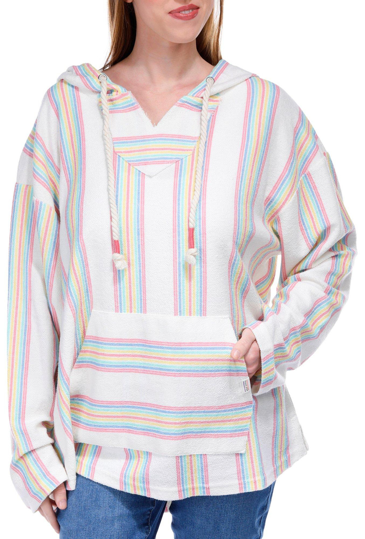 The Striped Baja Hoodie combines comfort and style effortlessly. Made with a cozy fabric, this hoodie features a drawstring hood and a convenient kangaroo pocket, perfect for keeping your hands warm or storing small essentials. The seafoam stripes add a touch of coastal charm, making it an ideal choice for casual outings or relaxed days at home.