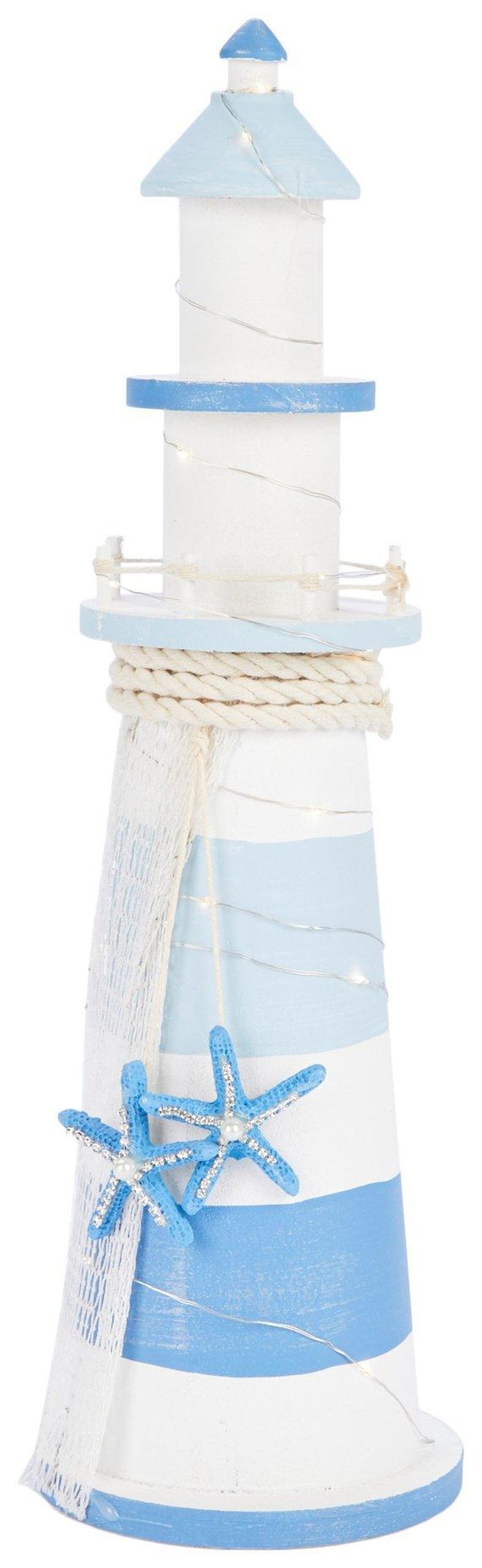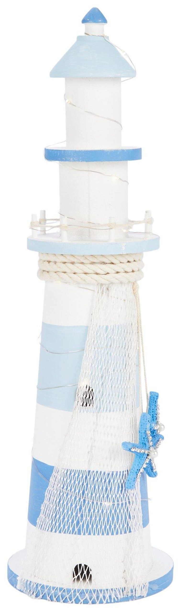 Fancy That 16 inch coastal lighthouse decor, crafted from wood and powered by batteries. It casts a warm glow and delivers nautical charm with solid craftsmanship. Designed to enrich mantels, patios, or shelves, it is more than decor it is atmosphere, with a coastal soul.