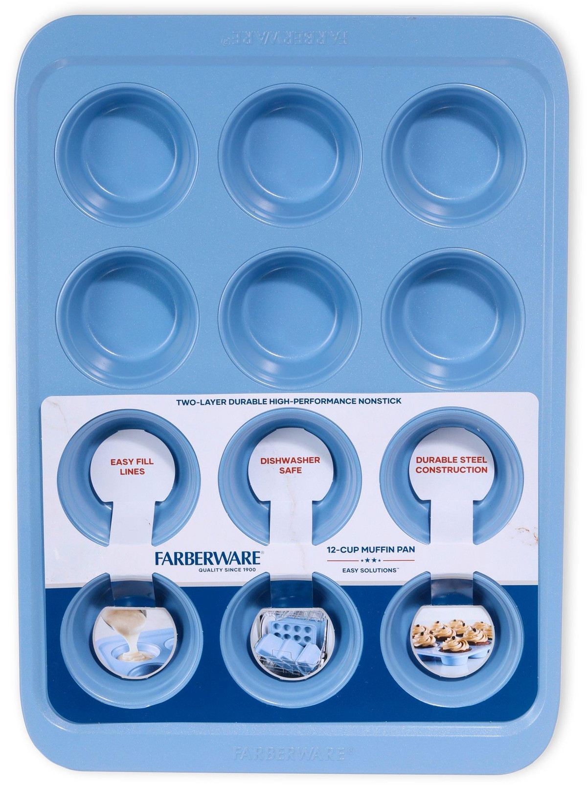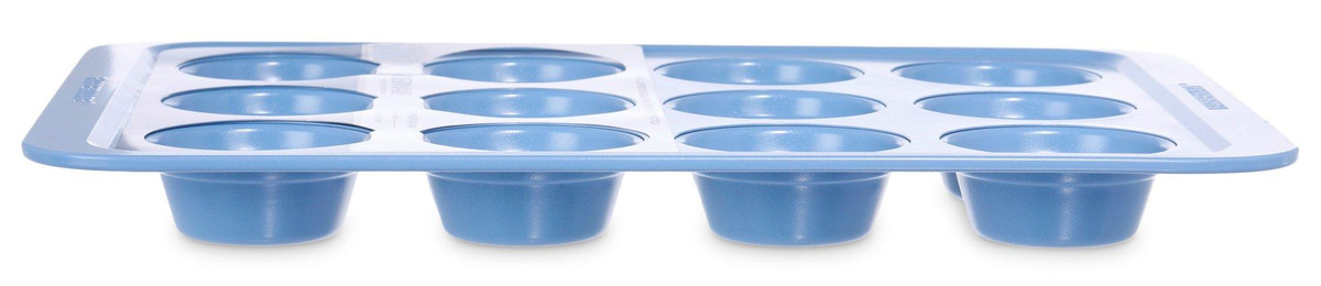 Designed for convenient, easy baking, this baking pan boasts a sturdy, heavy-duty steel construction with two layers of smooth, durable, easy-release nonstick. Unique features on this cupcake and muffin maker include a fill line that shows you just how much batter to add and wide, full-length handles that make it a breeze to move batches from stove to oven to cooling rack.