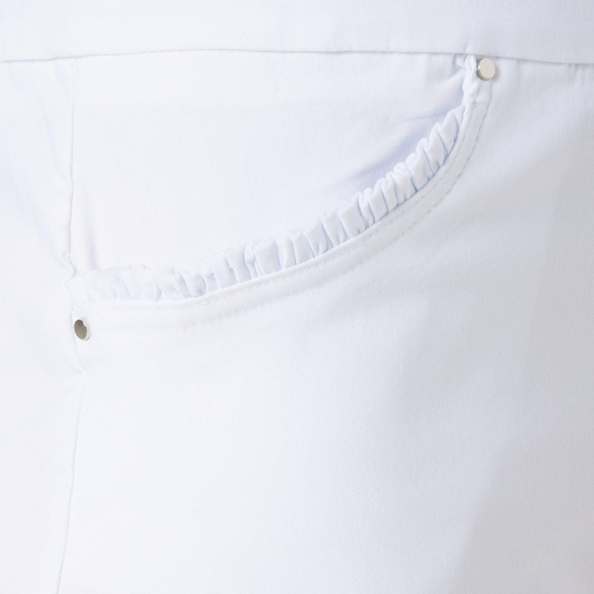 These shorts feature a stylish solid color, pull on waistband, front pockets, and a 7 inch inseam. Ruffle pocket details add a playful touch, making them a fun and comfortable choice for warm weather days.