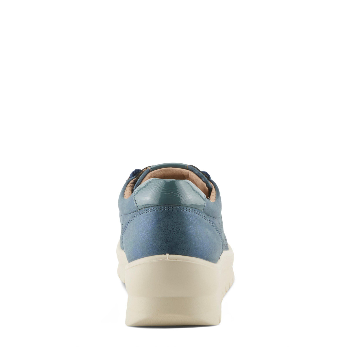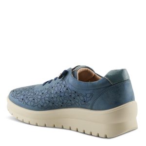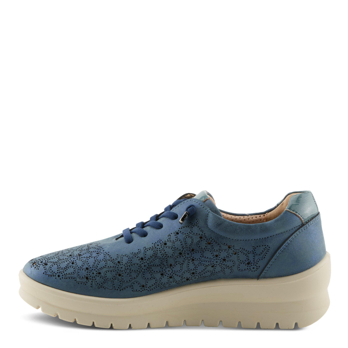 The Rayfield Athletic Sneaker by Flexus blends classic charm with modern flair. Featuring traditional laces with polished hardware tips, a padded collar, and pindot perforations for refined texture. With a shock-absorbent wedge outsole, arch support, and a removable insole, it delivers plush comfort and standout style. Faux leather upper and lining complete this elegant, true-to-size fit.