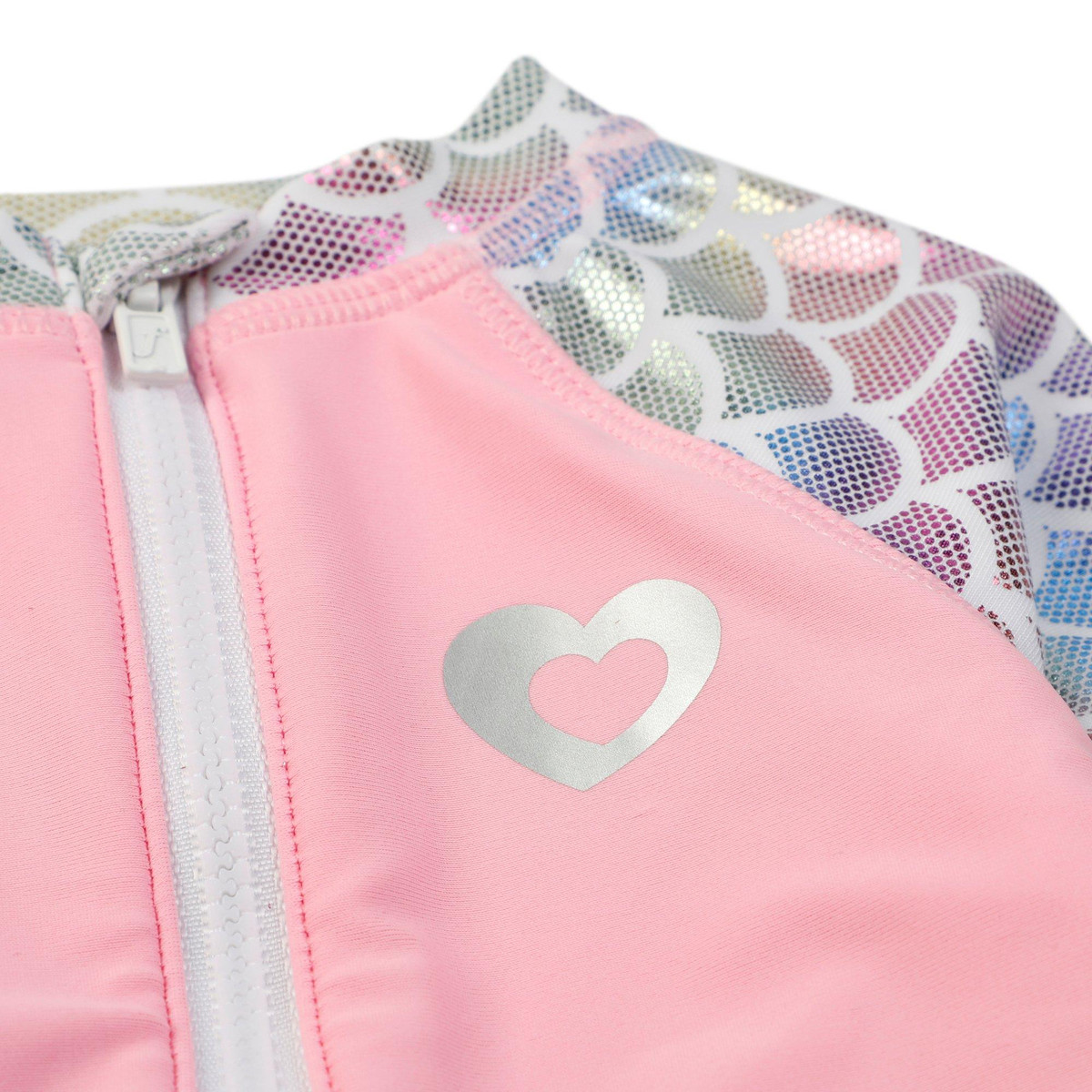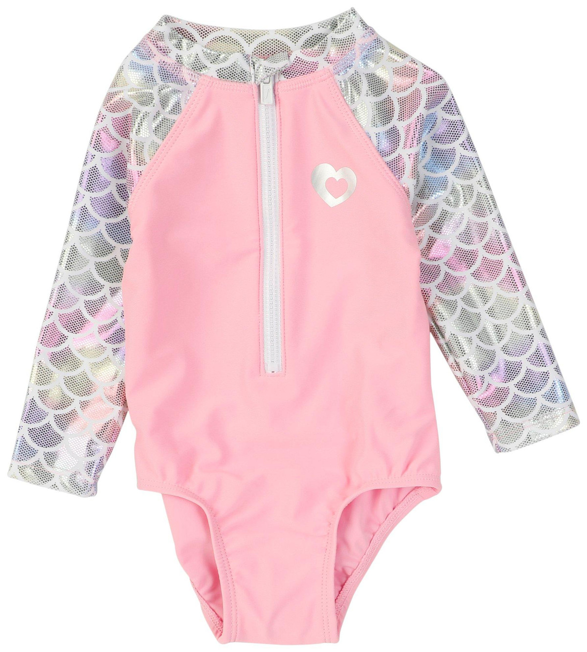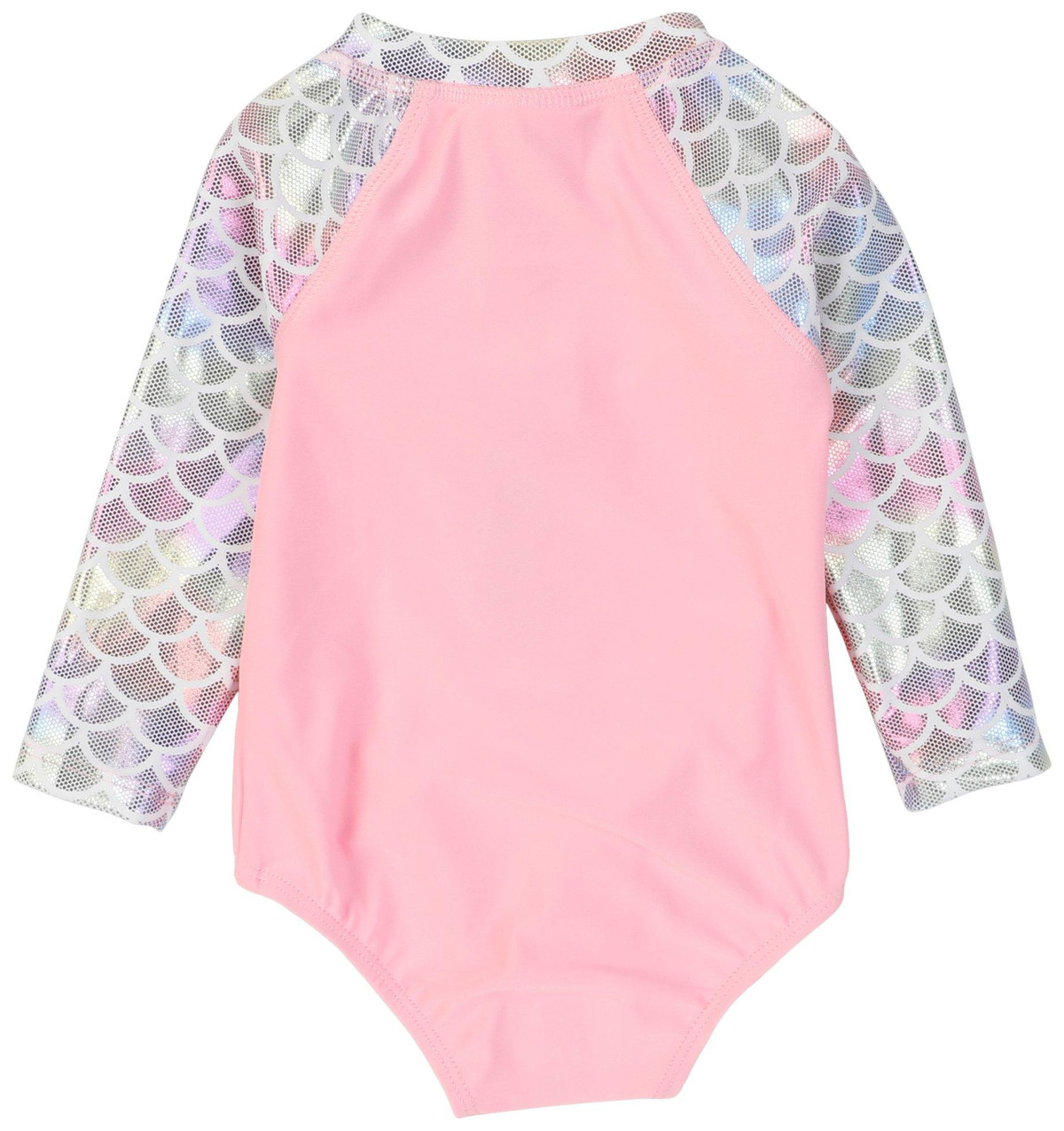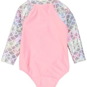 Shine bright and stay protected in this Girls Long Sleeve Swimsuit! Featuring shimmering accents that catch the light with every move, this sleek one-piece offers full arm coverage and a stylish front zipper for easy wear. Designed with UPF 50+ fabric, its perfect for sunny beach days or poolside fun, blending sparkle, comfort, and sun safety in one stunning suit.