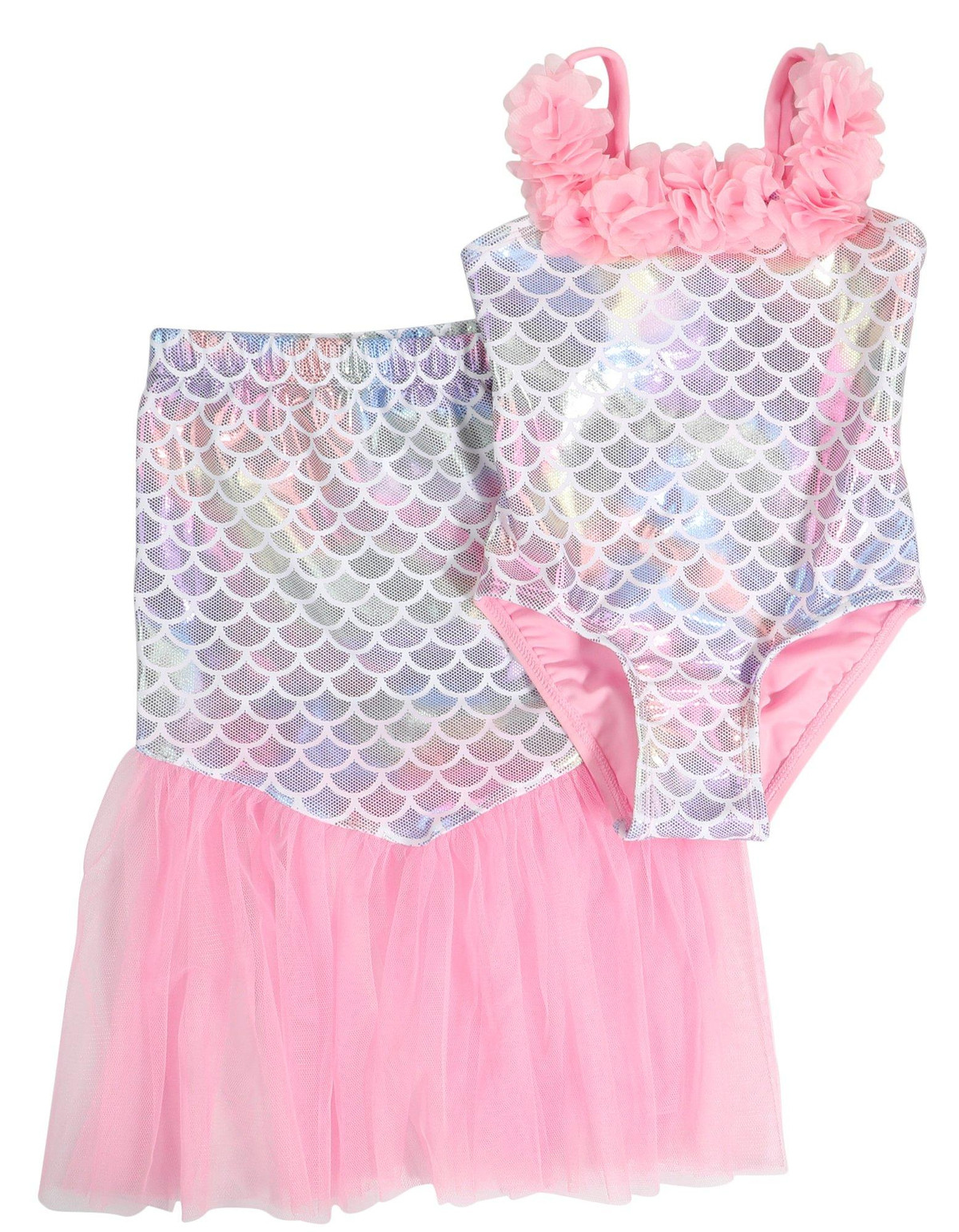 Make a splash with the 2-piece Mermaid Swimsuit Set! This enchanting swimwear features a magical reflective print that shimmers in the sunlight, perfect for your little mermaid. The set includes a stylish top and matching bottoms, designed for a comfortable and secure fit.