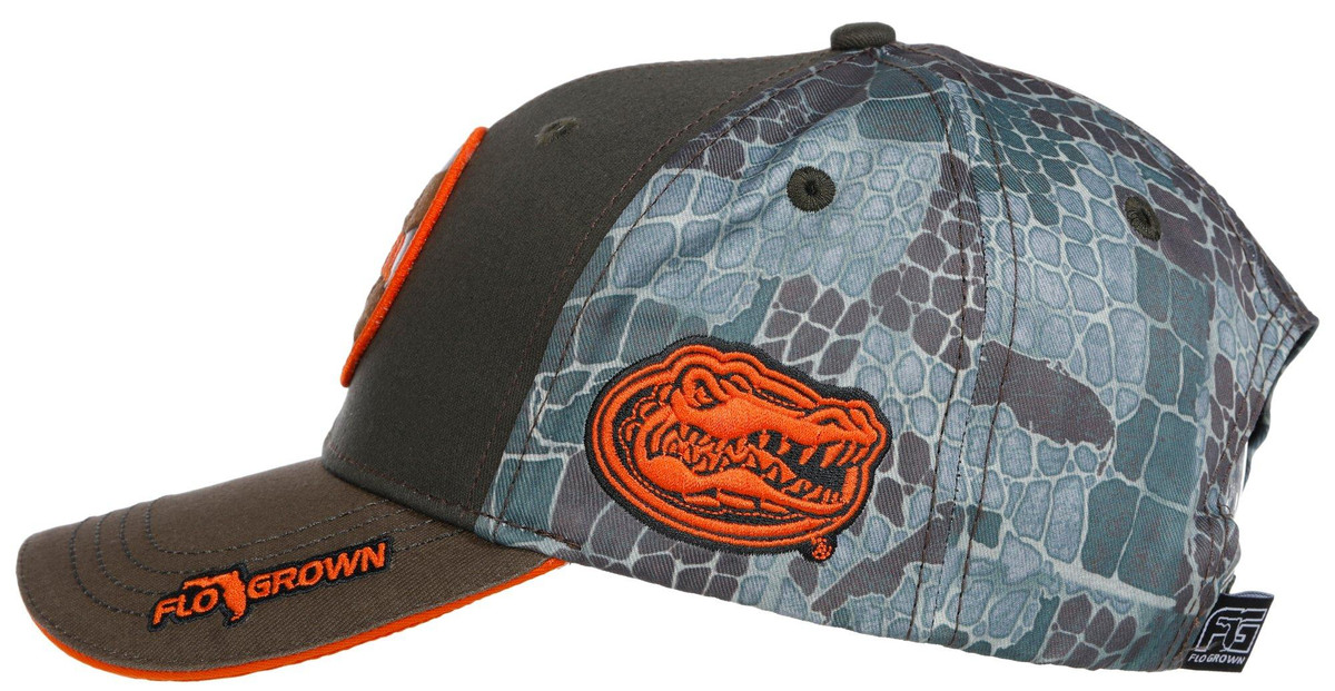 Support your team with bold style in this Mens University of Florida Gators Flag Camo Hat. Featuring a solid front panel with an Florida flag patch overlaid with Gators lettering, its surrounded by camo-patterned fabric for a rugged look. Adjustable for a custom fit. Ideal for outdoor events, tailgates, or everyday wear. Spot clean for best care. Fabrication is 60% cotton, 40% polyester.
