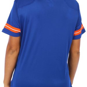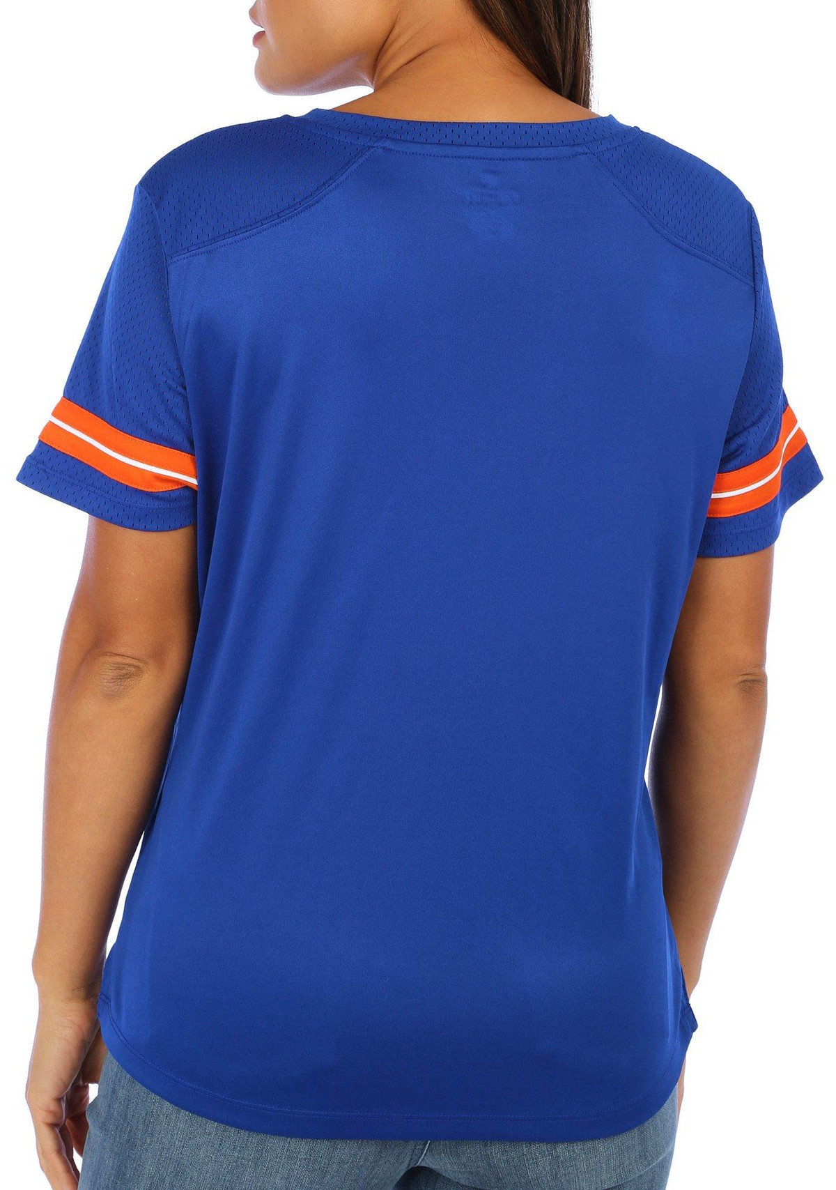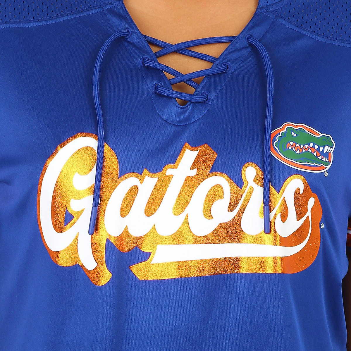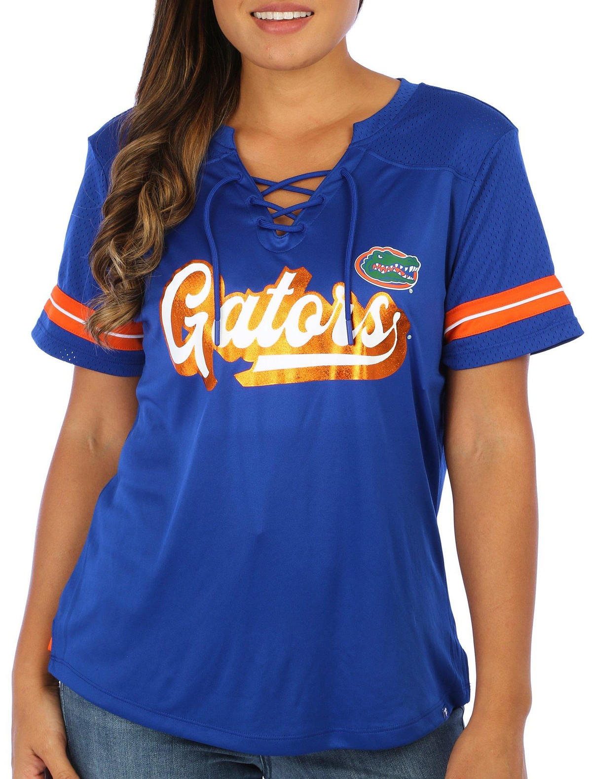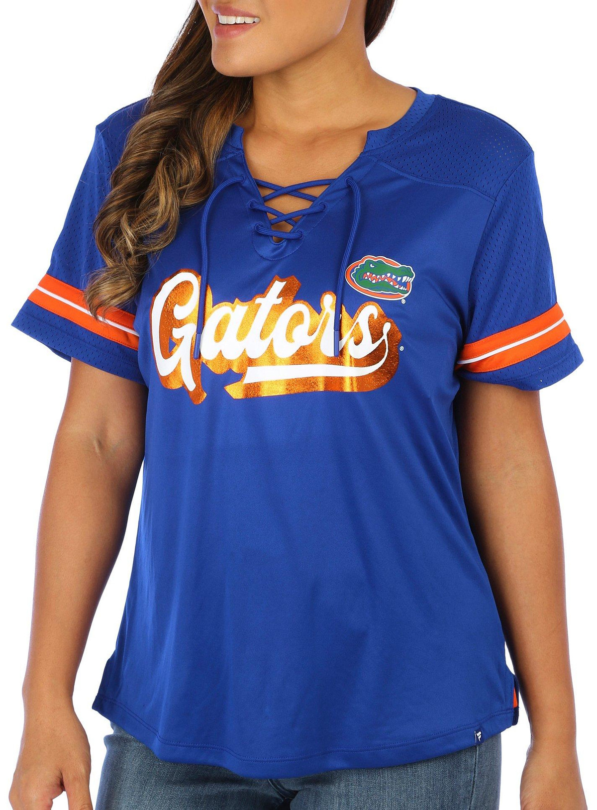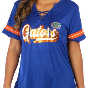 Channel your Florida Gators pride with a trendy look by grabbing with this Play Script Lace-Up T-Shirt. The stylized team wordmark printed across the torso proudly displays your love for your squad, while the contrast-color, sewn-on stripes add a touch of sporty flair. The mesh sleeves and collar keep this top breathable, while the split hems ensure it rests comfortable at the waist when you’re cheering your Gators all the way to a big win.